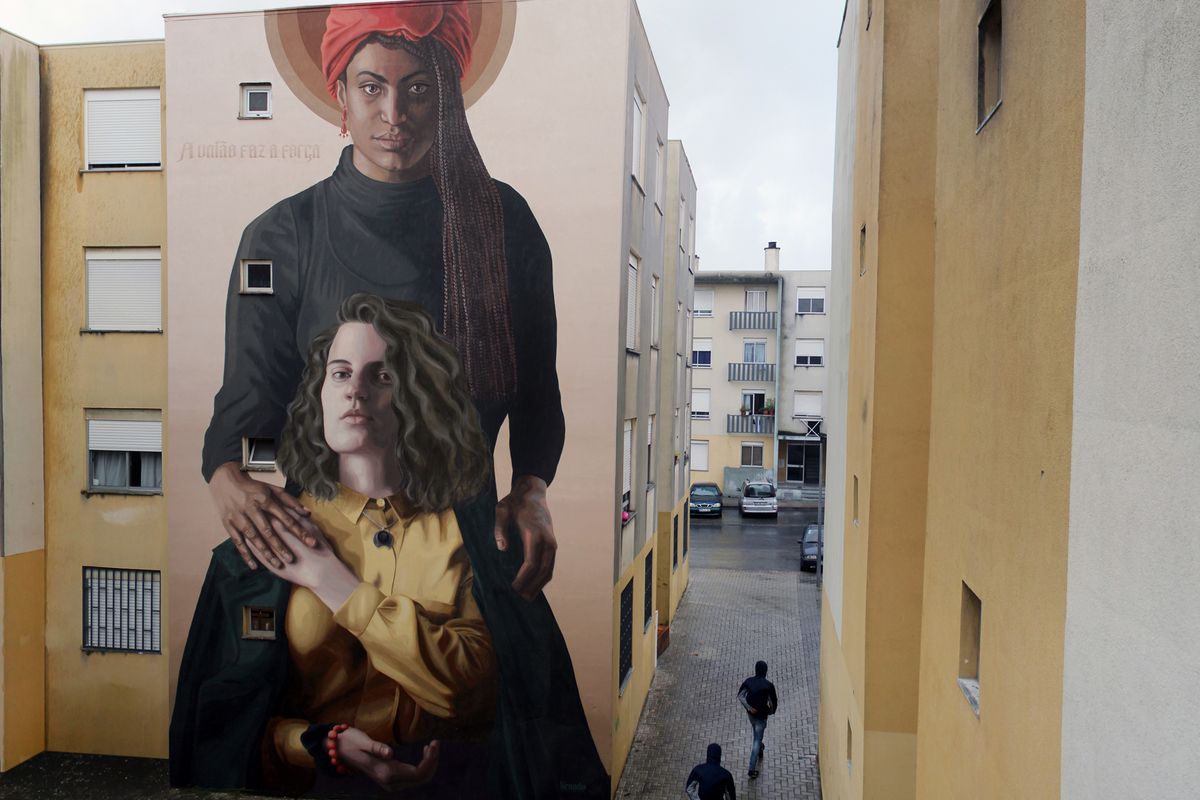 - Pintura mural del Colectivo Licuado (Uruguay), en la calle Jacinto Benavente, en el Centro Cultural Ramón Alonso Luzzy. Colectivo Licuado se formó en 2010 por Camilo Núñez y Florencia Durán. Tratan de interactuar con su entorno y contar historias desarrollando retratos simbólicos del entorno. Inspirados en temas como la mitología o en el arte clásico, pero sobre todo su obra se centra en la mujer o en las diferencias entre tipos de cultura y sus propias tradiciones: etnias, colectivos… Aunque su actividad creativa se desarrolla desde pocos años, su grandes producciones pueden verse en medio mundo.