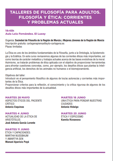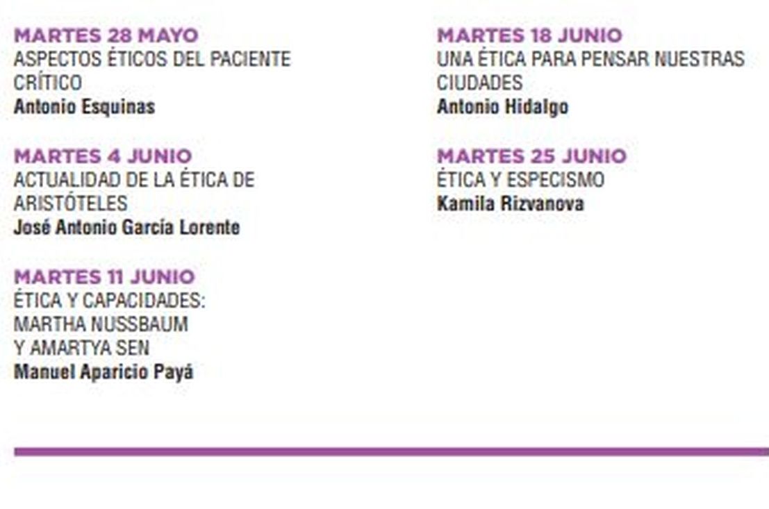 - Martes 11 de junio: 'Ética y capacidades: Martha Nussbaum y Amartya Sen', de Manuel Aparicio Payá.
