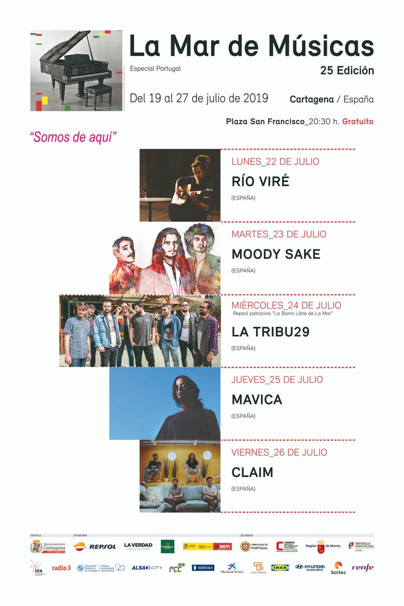 Río Viré, Moody Sake, La Tribu29, Mavica y Claim. Todos los conciertos serán a las