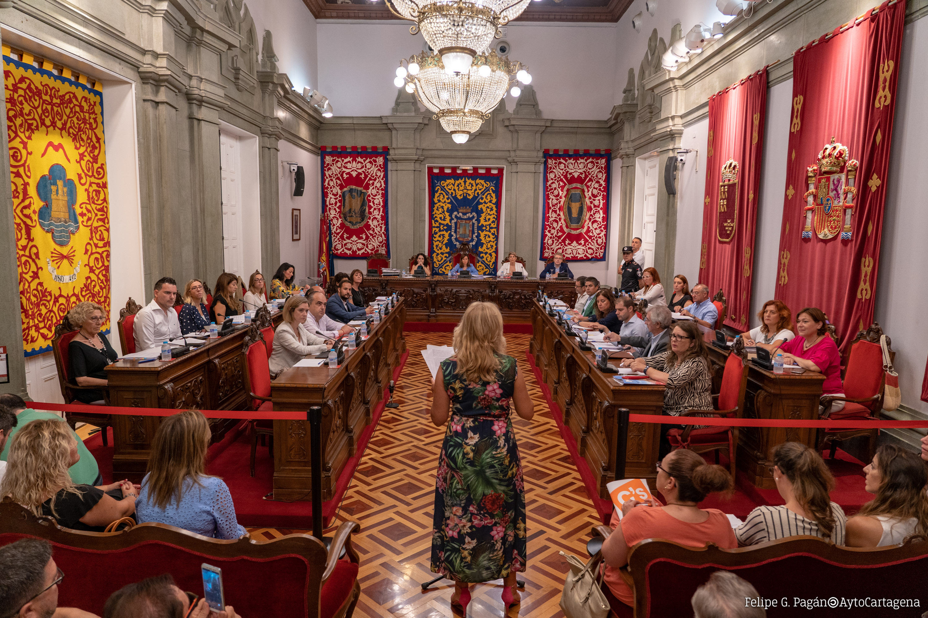 Ana Belén Castejón, a los vecinos de Los Urrutias que han asistido al Pleno Municipal.
