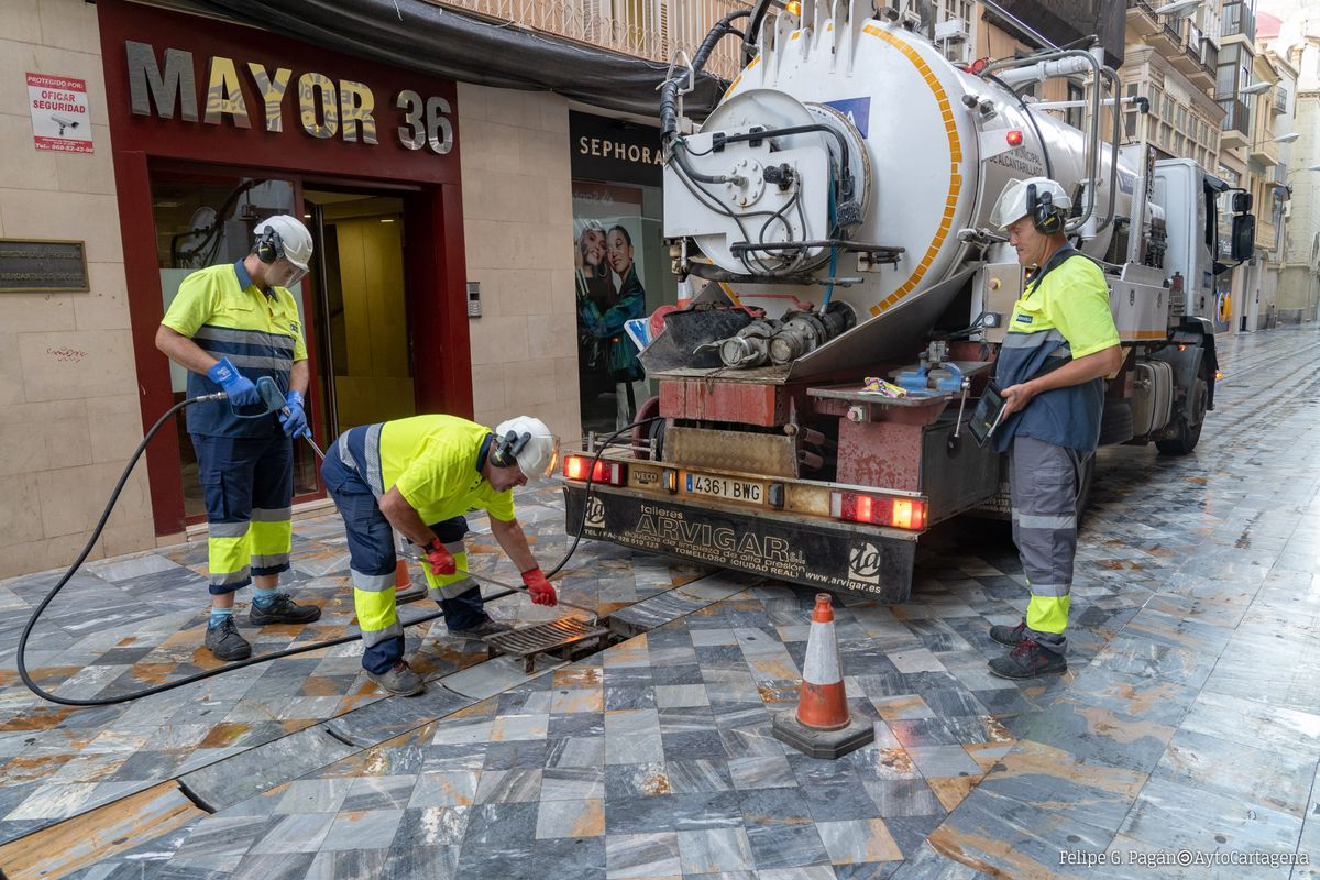 Estas labores que se realizan durante todo el año, se intensifican de forma especial en esta época tan propicia a los temporales. Esta mañana las labores se llevaban a cabo en zonas del Casco Antiguo como la