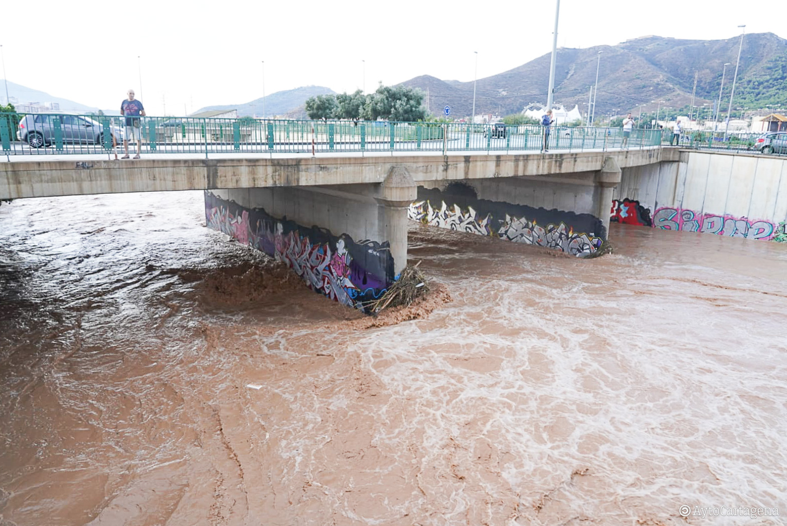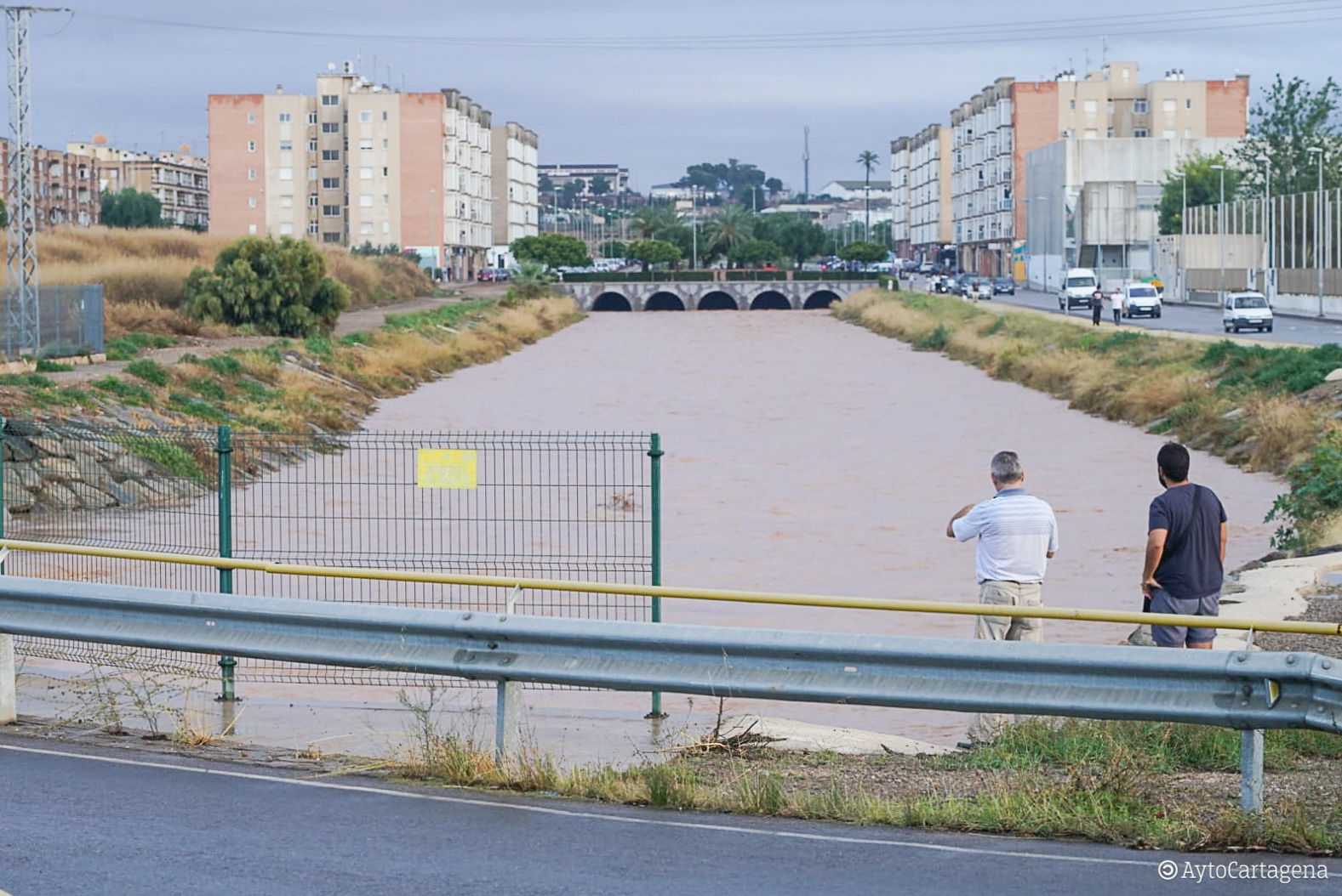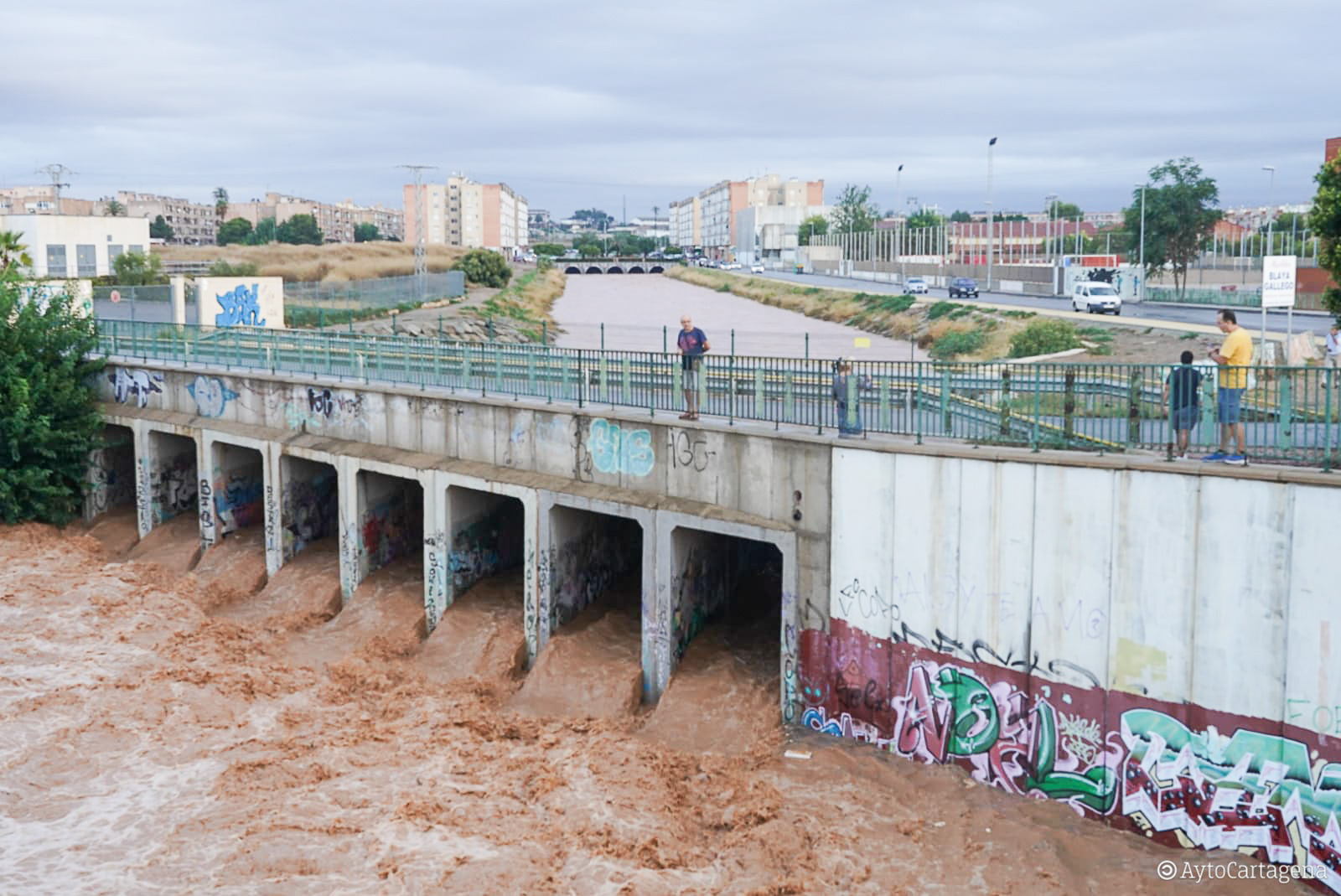 crecida de las aguas en el tramo final de la Rambla de Benipila, uno de los puntos calientes en episodios de lluvia
