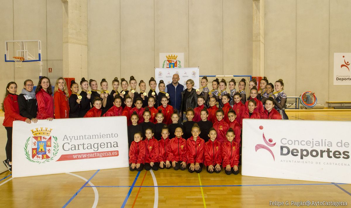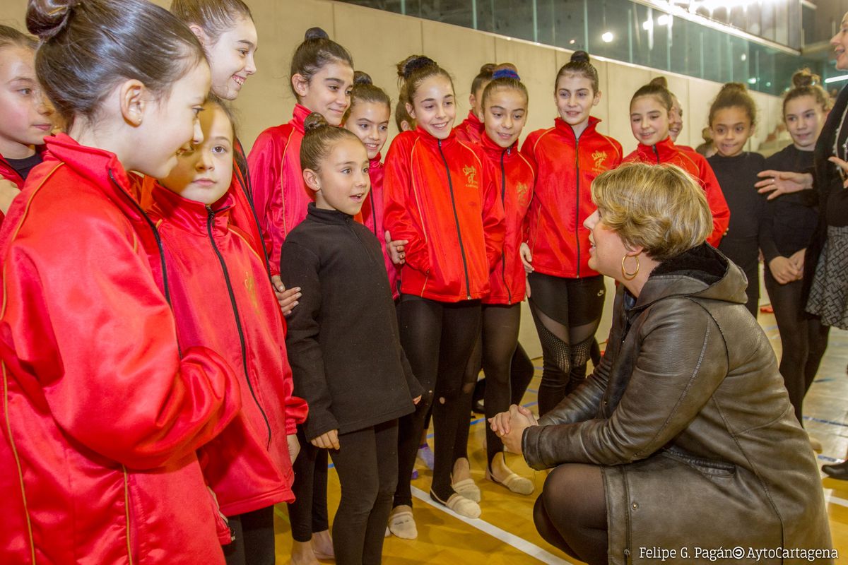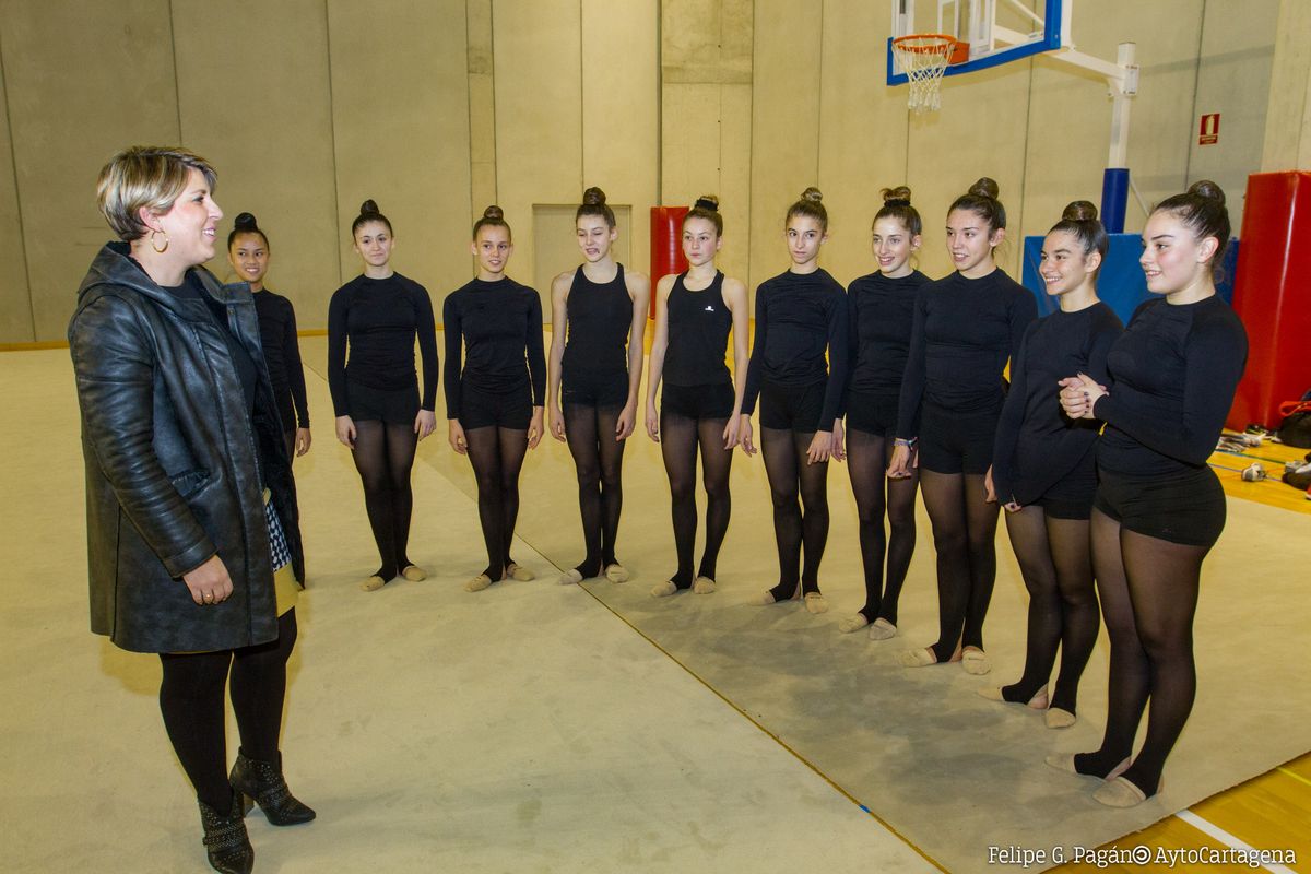 equipos de alto rendimiento del Club Rítmica Cartagena, recibieron este miércoles una visita de la vicealcaldesa de Cartagena y concejala del Área de Bienestar social y Deportes,
