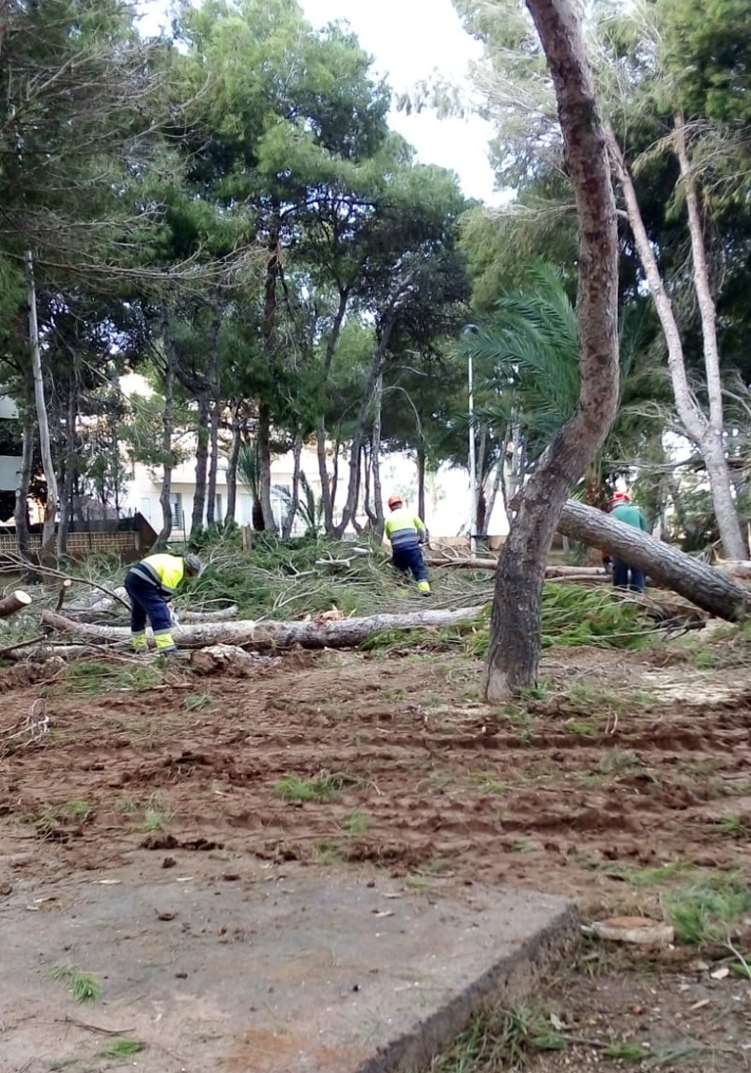 brigadas municipales comenzaron lunes acordonando la zona, para acometer el martes la retirada del arbolado, que continuó el miércoles en aquellas zonas que por los fuertes vientos impidieron actuar el día anterior.