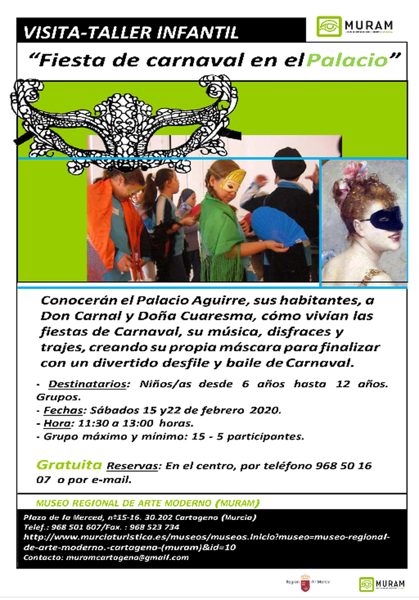 El Museo Regional de Arte Moderno de Cartagena organiza 'Fiesta de Carnaval en el Palacio' para acercar a los más pequeños el Palacio de Aguirre, y como vivían las fiestas de Carnaval sus habitantes Don Carnal y Doña Cuaresma
