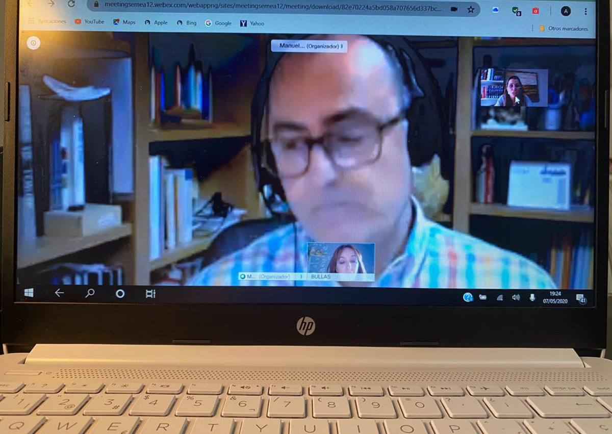 Dolores Muñoz y Manuel Pato, durante la reunión que mantuvieron este jueves 7 de mayo por videoconferencia.