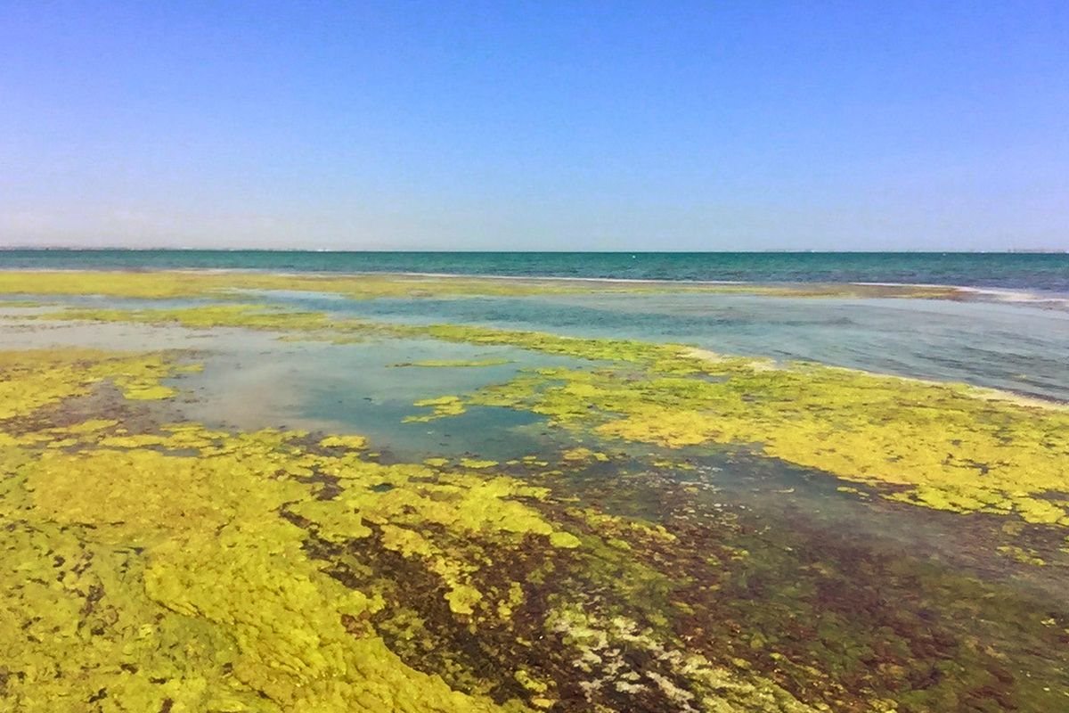 algas que crecen y se descomponen con gran rapidez junto a la orilla y