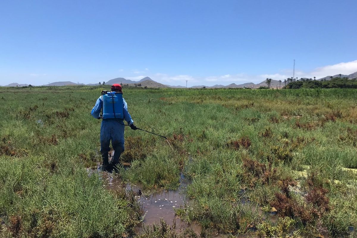 desde primavera se están tratando las zonas encharcadas del Carmolí, Lo Poyo y los canales de las Salinas de Marchamalo, independientemente de su titularidad.