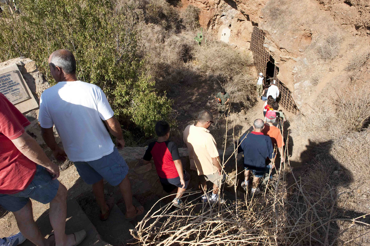ladera este del Cerro de San Ginés, donde se encuentra el yacimiento del Paleolítico Superior en el que se han encontrado industrias, fauna y restos de cabañas. Entre las ermitas y las entradas de la cueva hay diversas construcciones mineras en ruinas, así como pozos de aireación y restos de escombreras. Las dos entradas a la cueva que están en niveles inferiores, fueron ejecutadas por los mineros para extraer manganeso.