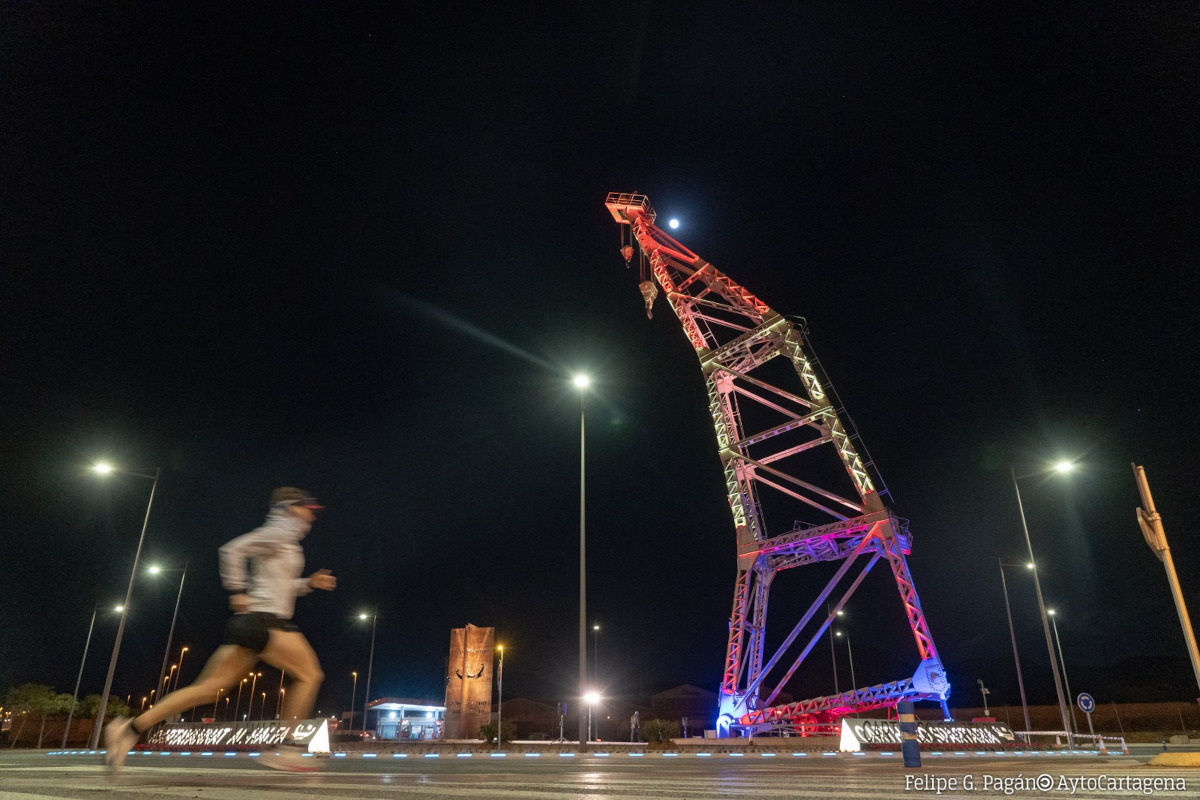 iluminación acorde, que realza la figura tanto de la grúa como del conjunto.