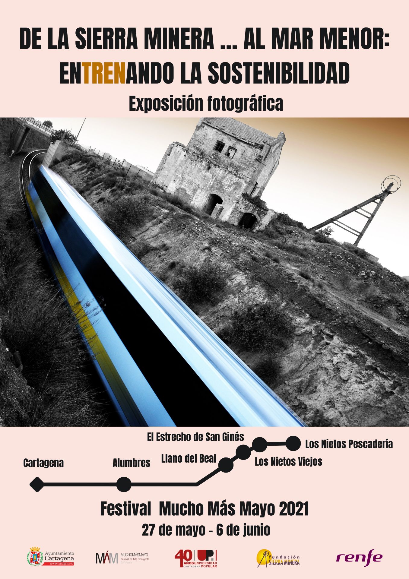 Ayuntamiento de Cartagena y Renfe presentan este viernes 28 de mayo a las 19:00h, en la estación de Cartagena, la exposición fotográfica 'De la Sierra Minera…..al Mar Menor: entrenando la sostenibilidad', en las estaciones y trenes de la línea Cartagena- Los Nietos. La exposición en las estaciones consta de 12 fotografías en la estación de Cartagena y carteles con 25 imágenes en diversos apeaderos de la línea. En cada uno de los trenes se colocarán 4 fotografías sobre patrimonio y paisajes mineros.