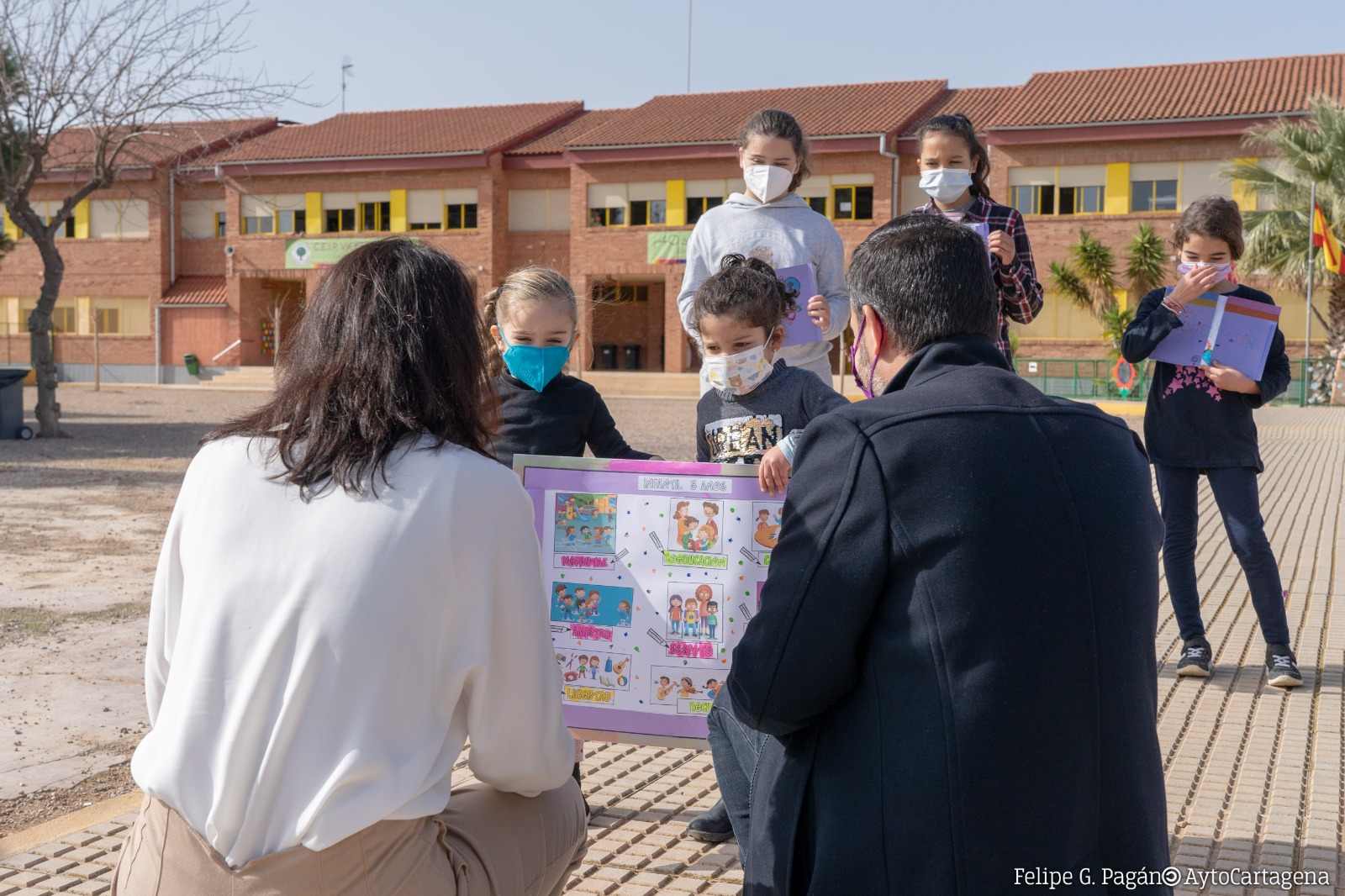 David Martínez Noguera e Irene Ruiz, respectivamente, han visitado el centro educativo este lunes para inaugurar la nueva puerta de acceso al colegio, junto a la directora del centro,