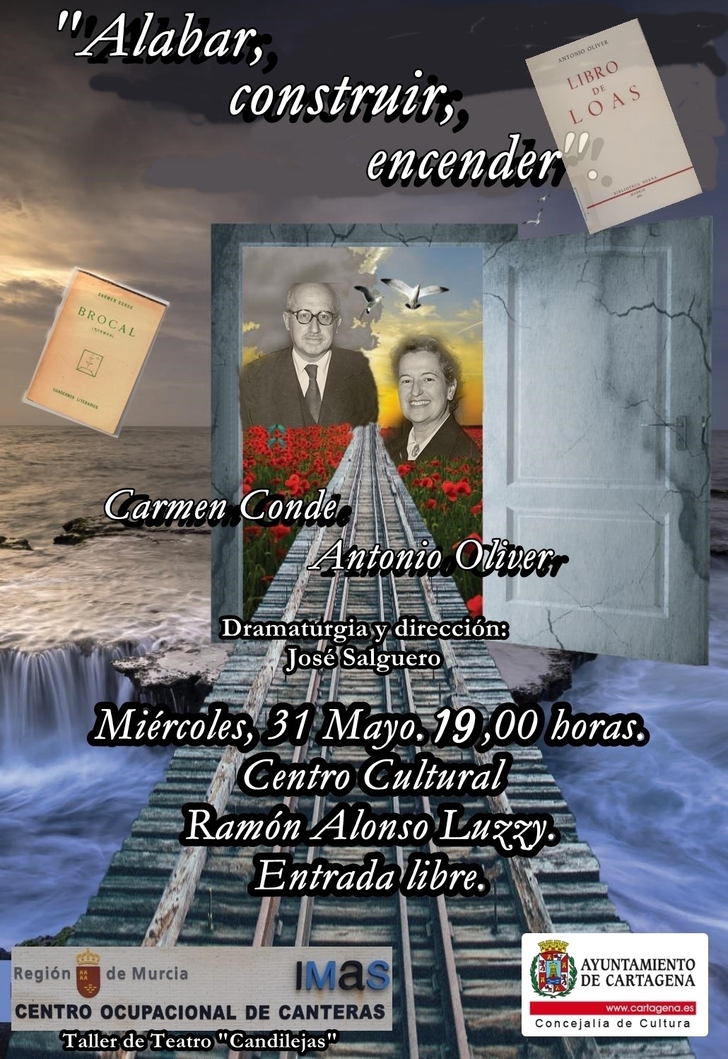 El texto es un homenaje a los poetas Carmen Conde y Antonio Oliver. En el mismo se recrean los momentos más transcendentales de la vida de ambos y de influencia cultural en la ciudad de Cartagena. La obra recoge un documento videográfico, texto y expresión corporal del grupo 'Candilejas', que pone todo su empeño en hacer al público disfrutar de esta maravillosa actuación. El grupo teatral cuenta con el apoyo de las concejalías de Educación y Cultura del Ayuntamiento de Cartagena.