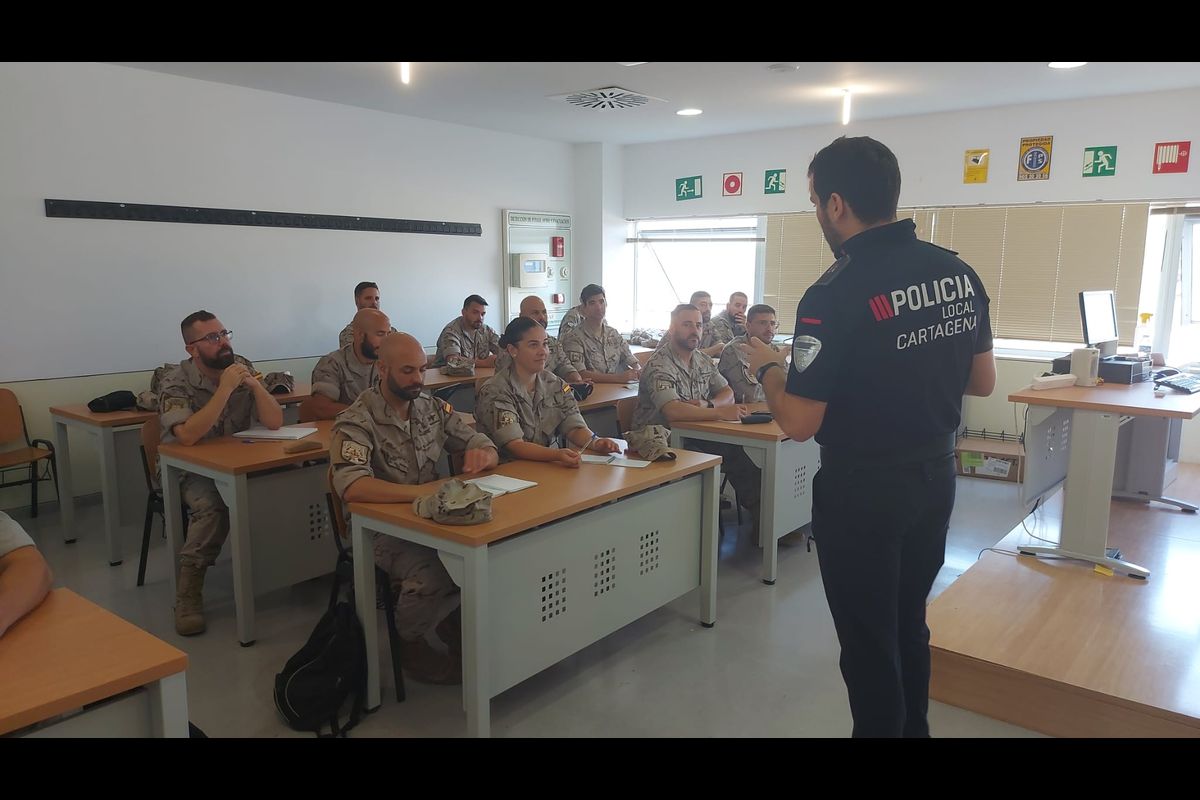 Profesores de la Escuela de Seguridad Pública del Ayuntamiento de Cartagena (ESPAC) están colaborando con la formación específica sobre seguridad vial y movilidad dentro de la capacitación de la Policía Naval de Infantería de Marina.