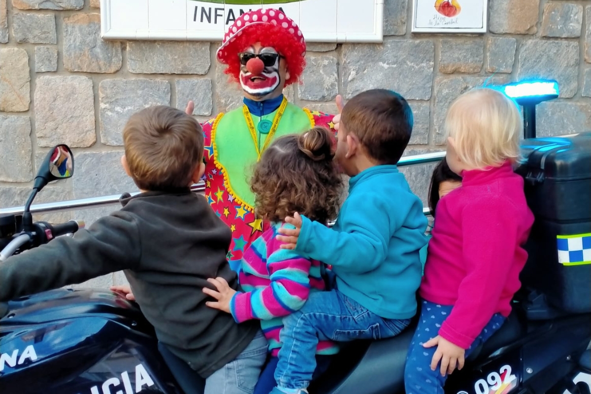 Los agentes del Ayuntamiento visitan el Hogar de la Infancia de Cartagena vestidos de payasos junto a compañeros de Policía Nacional