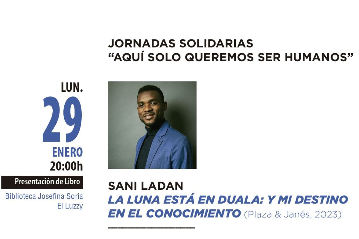 El próximo lunes empezarán las jornadas solidarias ‘Aquí solo queremos ser humanos’ con la presentación del libro ‘La Luna está en Duala: y mi destino en el conocimiento’, de Sani Ladan, a las 20:00 horas en la Biblioteca Josefina Soria de El Luzzy. El acto lo presenta María Jesús Achega, miembro de Círculo de Silencio, y el título trata sobre los problemas de ser un niño que quiere estudiar en un lugar en el que la educación no está garantizada.