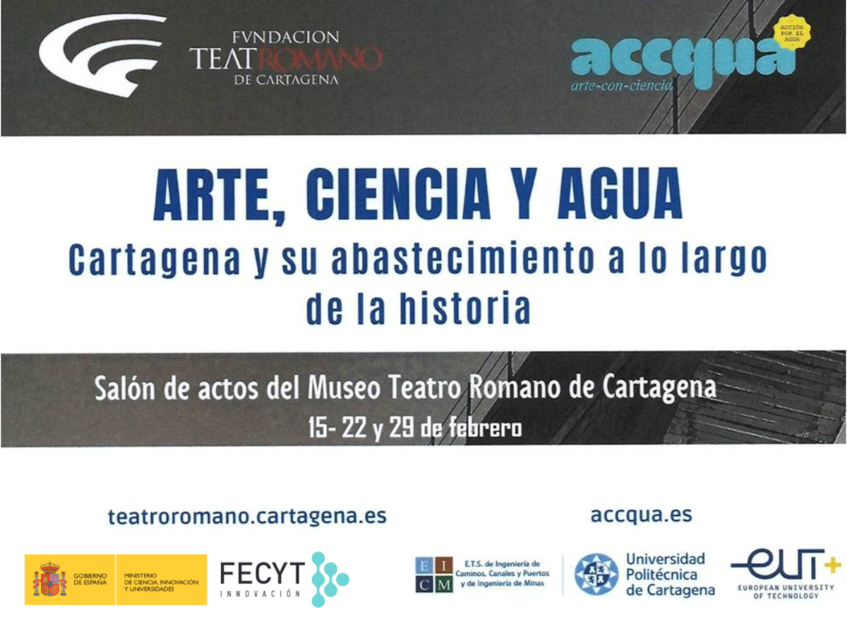 El agua es un elemento clave para el desarrollo de una sociedad. En este ciclo de conferencias se dará a conocer el importante papel que ha tenido el abastecimiento de agua en el desarrollo de Cartagena a lo largo de su Historia. Las conferencias quieren conectar el pasado con el presente, así el proyecto ACCQUA (FCT-22-18736), puesto en marcha por la Escuela Técnica Superior de Ingeniería de Caminos, Canales y Puertos y de Ingeniería de Minas de la Universidad Politécnica de Cartagena, con la colaboración de la Fundación Española para la Ciencia y la Tecnología - Ministerio de Ciencia, Innovación y Universidades, busca dar respuesta a los retos que plantea la gestión sostenible del suministro de agua en la actualidad y en el futuro mediante la conexión entre el arte y la ciencia.