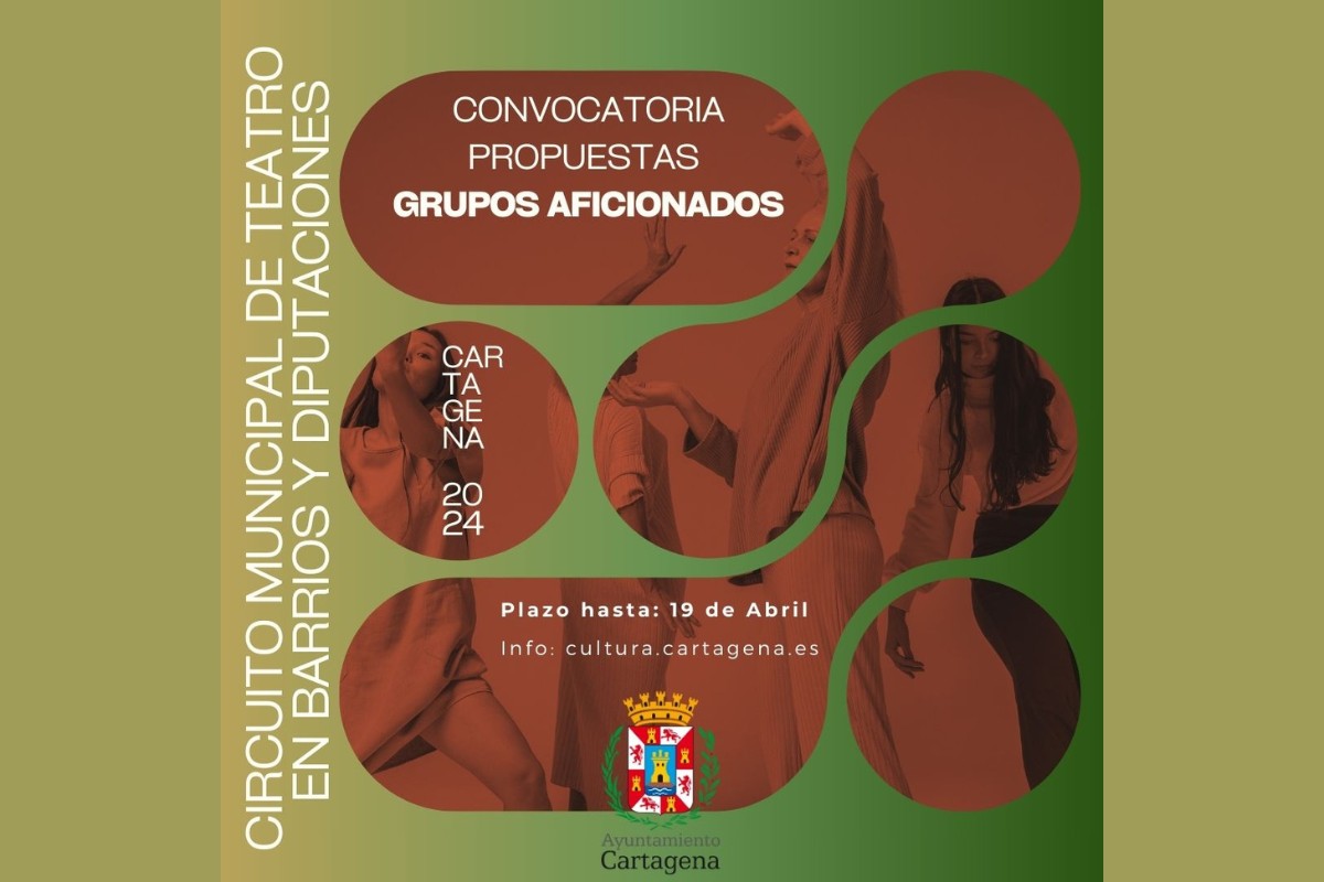 El Ayuntamiento de Cartagena ha abierto el plazo para presentar proyectos de Teatro Aficionado para un próximo Circuito Municipal de Teatro en barrios y diputaciones del municipio. Se podrán enviar propuestas hasta el 19 de abril. Las bases para la participación en esta iniciativa se pueden consultar adjuntas a esta noticia o en el siguiente enlace.