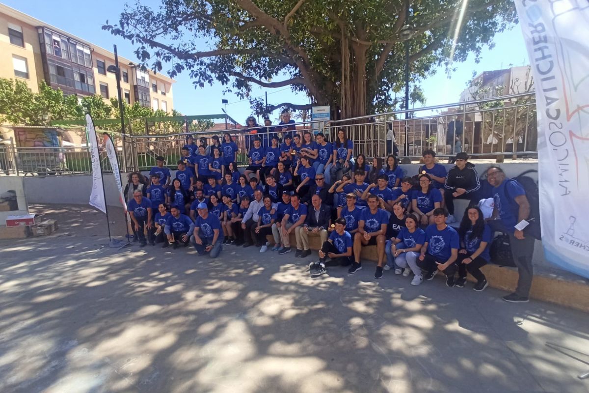El programa ‘Arrímate al caliche’, impulsado por la Concejalía de Educación y la Asociación de Amigos del juego del Caliche, se clausuró este martes 9 de abril con la celebración de un campeonato en la Plaza de Juan XXIII en el que resultaron ganadores Sara Mulero, del IES Pedro Peñalver, y Reda Sesoufi, del IES Arturo Pérez Reverte.