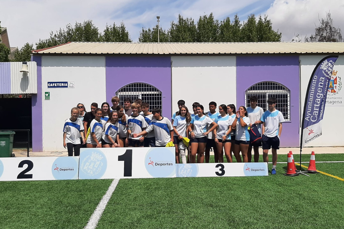 Este viernes 26 de abril se celebró la fase final del II Encuentro Escolar de Rugby Cinta organizado por el Ayuntamiento de Cartagena a través de la Concejalía de Deportes, en colaboracion con el Club Rugby Universitario Cartagena, en el que se dieron cita un buen número de centros educativos del municipio.
