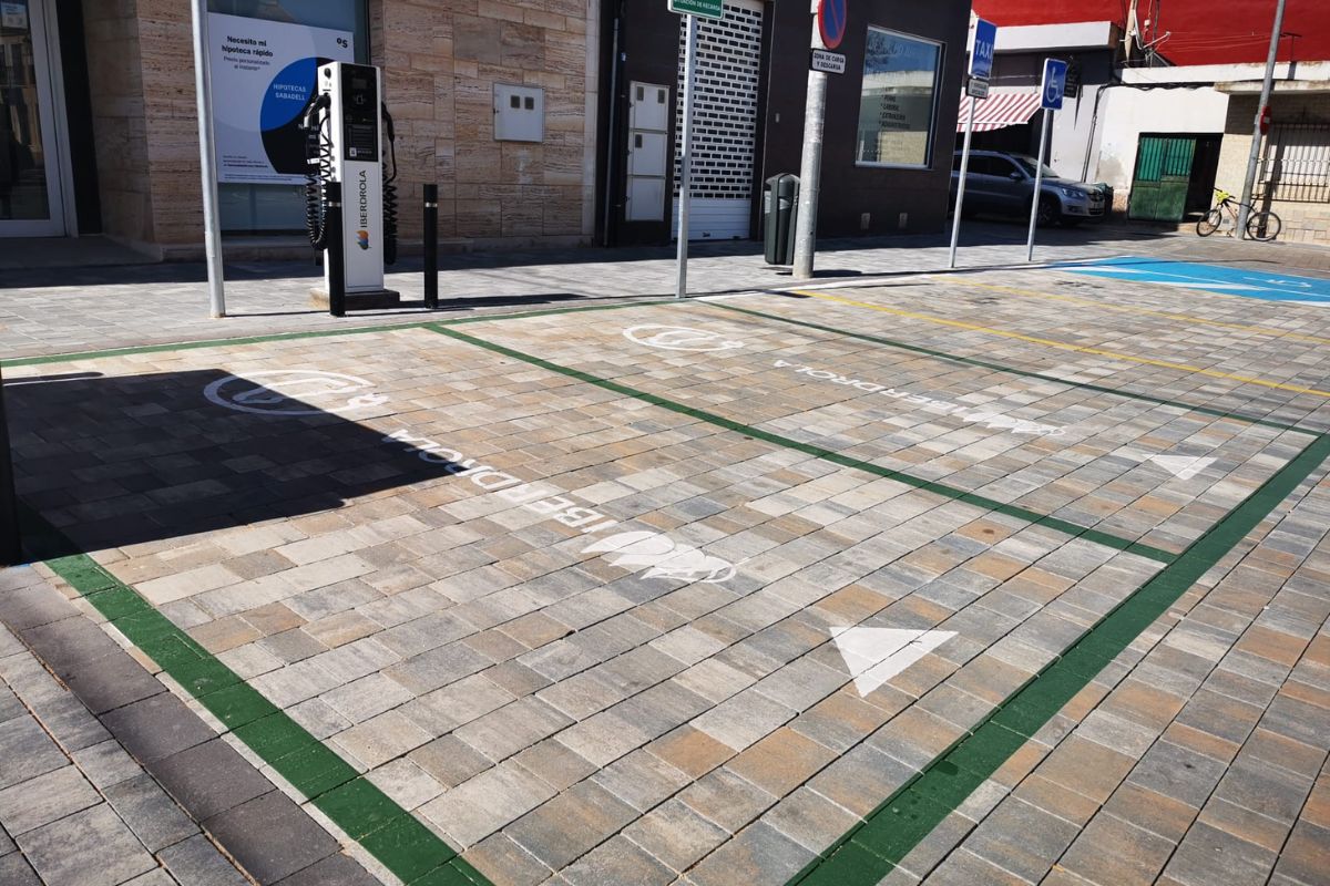 El punto de recarga para vehículos eléctricos que el Ayuntamiento de Cartagena ha instalado en la plaza Manuel Zamora de La Palma ha entrado ya en funcionamiento y viene a completar las obras de mejora urbana que se han realizado en la principal plaza de la localidad, situada frente a la iglesia.