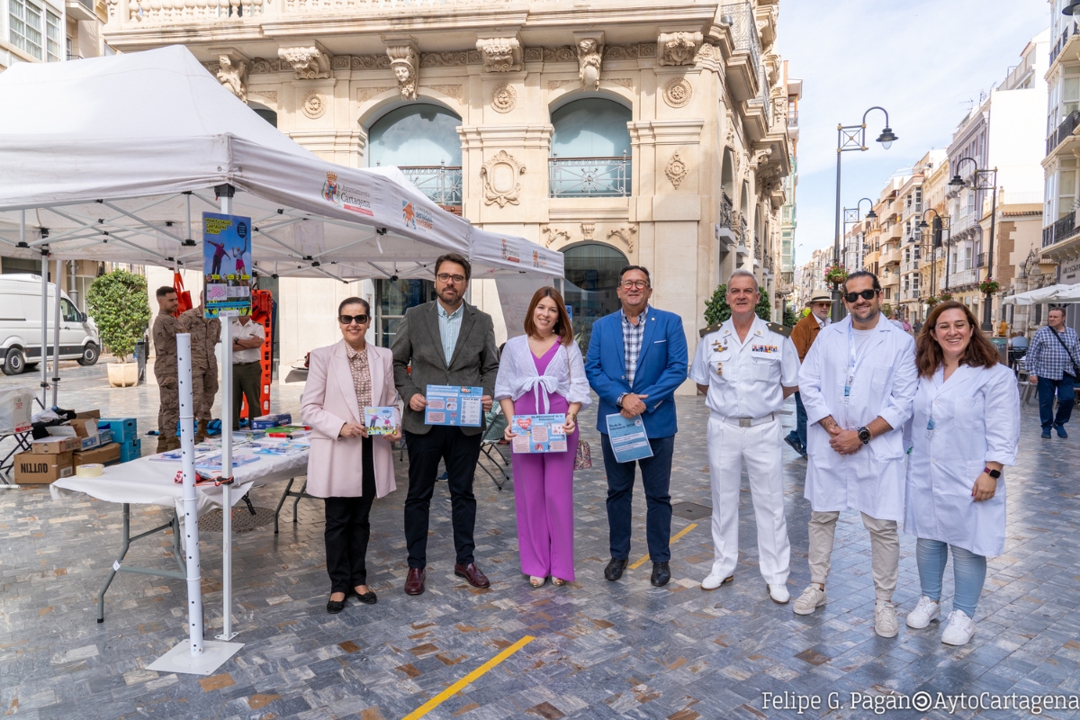 El concejal del área de Empleo, Formación y Contratación, Álvaro Valdés, ha asistido a la inauguración de este evento, en el que colabora también el Ayuntamiento de Cartagena y las Fuerzas Armadas. Junto a él se encontraba Esther Baeza, tesorera del Colegio de Enfermería.
