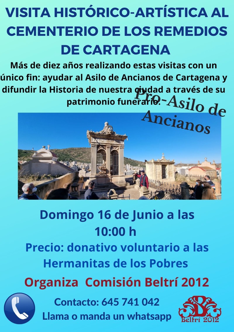 La Comisión Beltrí 2012 ofrece una visita histórico-artística al Cementerio de los Remedios de Cartagena este domingo 16 de junio, a las 10 horas, para recaudar fondos con el fin de ayudar al Asilo de Ancianos, como viene haciendo desde hace ya diez años.