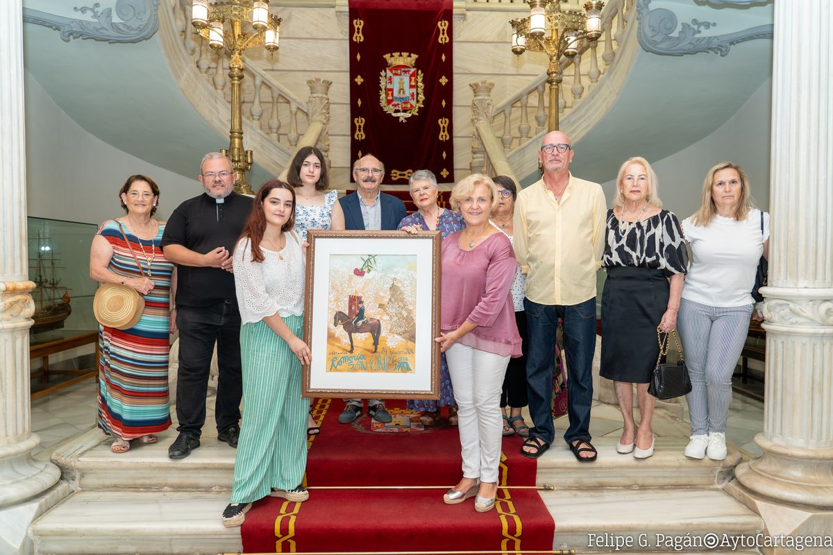 La Romería de San Ginés, que este año se celebra el sábado 24 de agosto, ya tiene imagen para su edición de 2024, obra de la cartagenera Marta Pavía, que se ha presentado este martes 18 de junio en el Palacio Consistorial, un acto al que han asistido la concejala de Festejos, Paqui Martínez, el párroco de San Ginés, Lázaro Gomariz, y José María Alcalde en nombre de la Hermandad de Romeros.