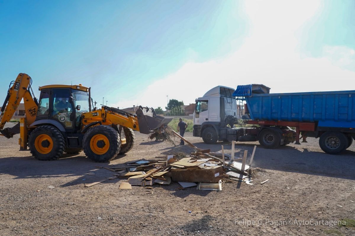 Bomberos del Ayuntamiento de Cartagena supervisan hogueras para una noche de San Juan segura este domingo, 23 de junio. Los trabajadores municipales comienzan este jueves la ronda de control de estas acumulaciones de madera. Las que no cumplan las normas serán retiradas o rebajadas de carga combustible por parte de funcionarios de Infraestructuras, que cuentan con camiones y máquinas excavadoras para mover el material. Todas las indicaciones de Bomberos sobre hogueras y material pirotécnico se pueden consultar en la web municipal www.cartagena.es
