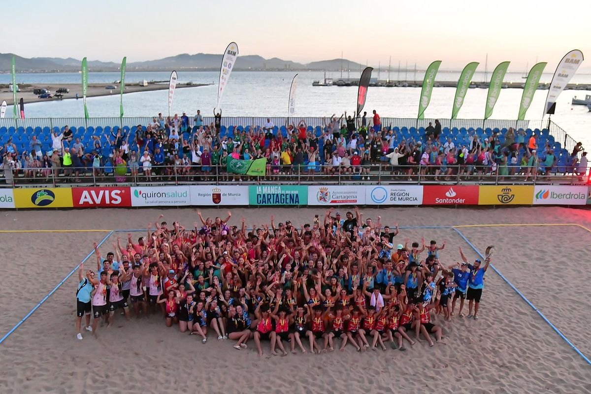 Durante todo el fin de semana La Manga del Mar Menor ha acogido la Copa de España de balonmano playa, organizada por la Real Federación Española de Balonmano y la Federación de Balonmano de la Región de Murcia, con la colaboración del Ayuntamiento de Cartagena y la CARM, y en la que han participado 128 equipos y más de 2.000 jugadoras y jugadores de todas las categorías, desde Infantil a Sénior.