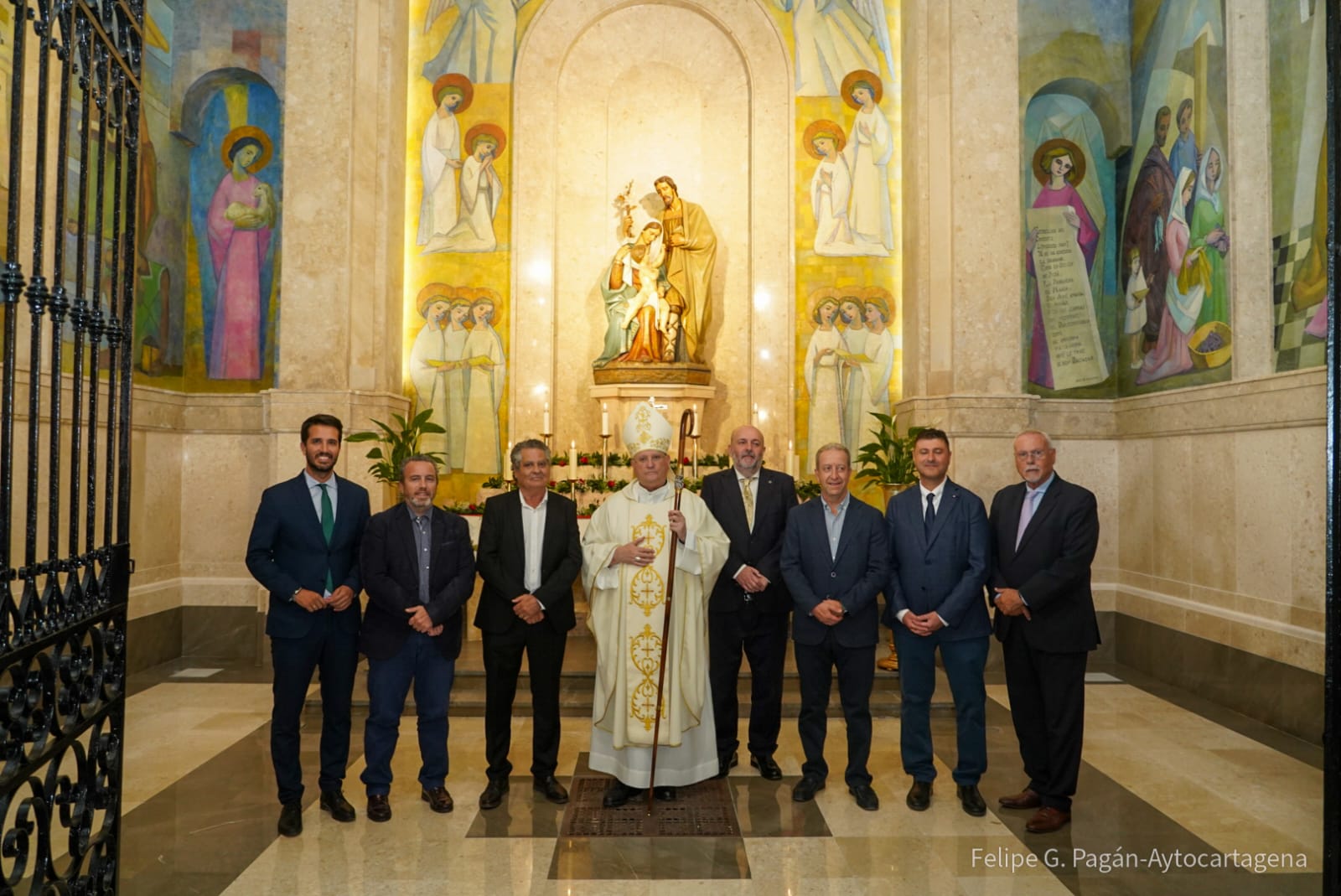 El edil ha visitado la renovada capilla este viernes, 11 de octubre. Junto a Pablo Braquehais ha estado también el obispo José Manuel Lorca, y el director general de Patrimonio Cultural de la Comunidad Autónoma, Patricio Valverde. Juntos han valorado que la inversión total ha sido de 130.000 euros, para la que se ha contado, además de fondos del Ayuntamiento de Cartagena, con la aportación de la Comunidad Autónoma y la Diócesis de Cartagena.