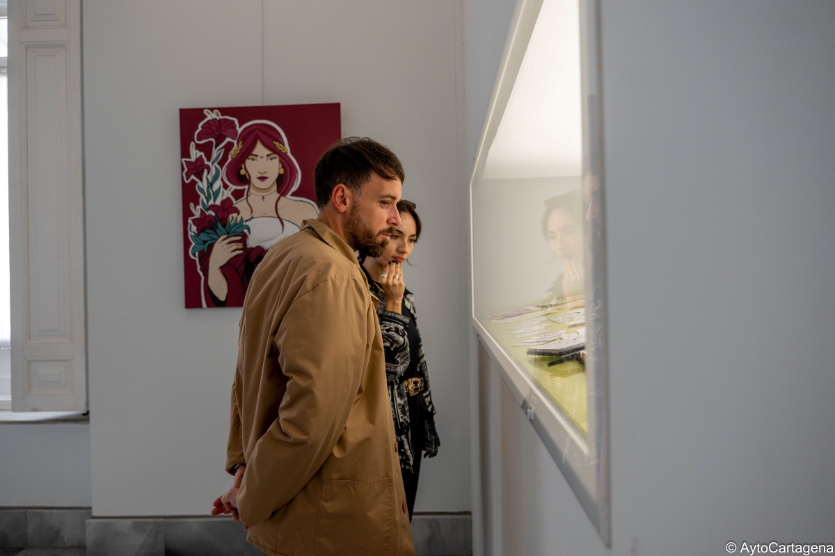 La Sala Subjetiva del Palacio Consistorial de Cartagena acoge desde este miércoles la exposición "El paseo de las musas", formada por obras en la que la artista Aida Garrido construye a mujeres empoderadas. El concejal de Juventud, José Martínez, ha compartido con la autora sus impresiones sobre una muestra que se podrá visitar hasta el 9 de enero en el horario de apertura de este edificio, de martes a viernes de 10:30 a 13:30 y de 17:00 a 19:00 horas, los sábados de 10:00 a 13:30 horas y de 17:00 a 20:00 horas, y los domingos y festivos de 10:00 a 13:30 horas.