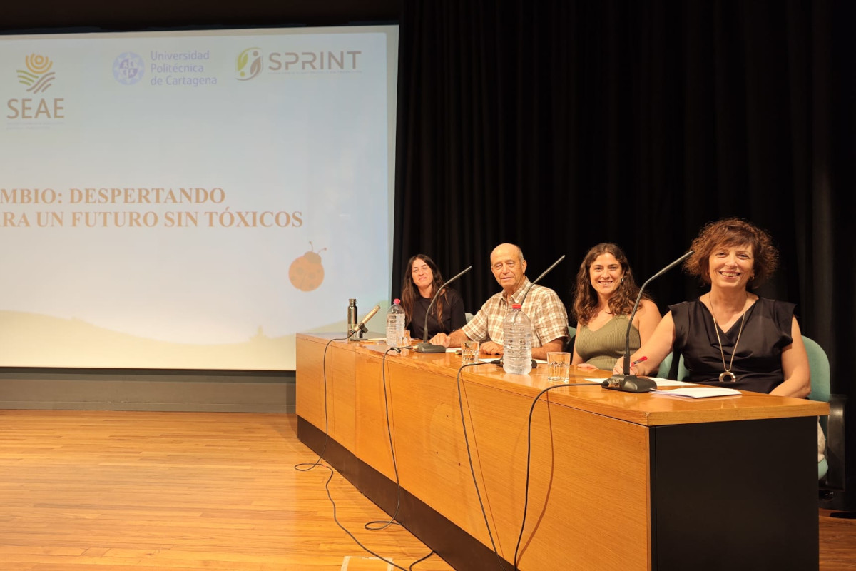 El evento contó con la participación de una mesa redonda de personas expertas que compartieron sus investigaciones y experiencias. Josefina Contreras (UPCT - SEAE) expuso los resultados del proyecto europeo SPRINT, mientras María Vittoria Barbieri (IDAEA/CSIC) expuso los datos de los análisis de pesticidas en el campo de Cartagena. El ingeniero agrónomo Ramón Navia explicó la situación actual de la Región de Murcia, y Lorena Rosique (Proyecto AgroSimbiosis-UMU) destacó la importancia de crear las redes locales de producción y consumo agroecológico. La investigadora en ciencias ambientales Alicia Morugán Coronado (UPCT) moderó el debate y organizó el evento junto al químico ambiental, Miguel Velázquez (IEO-Murcia).
