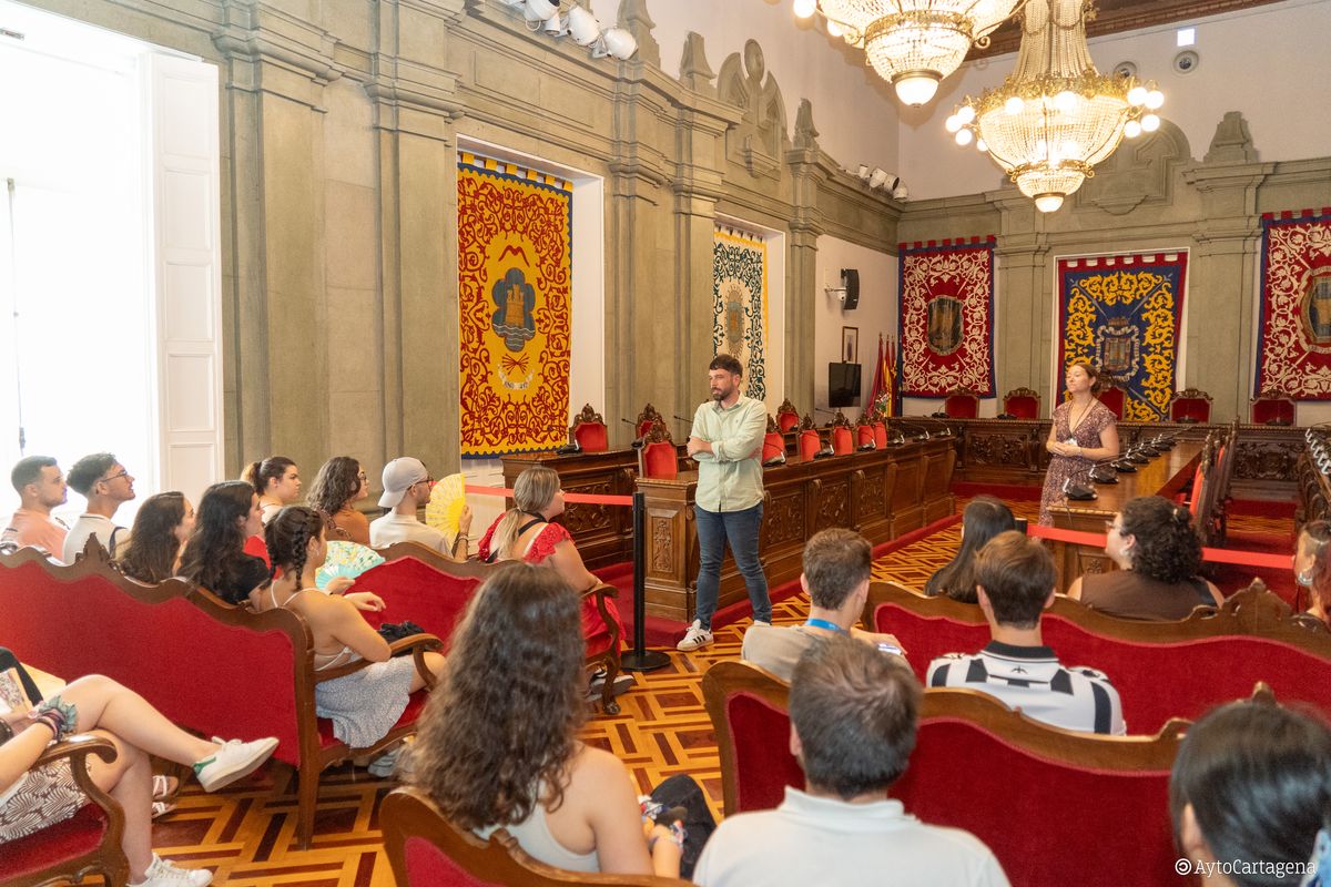 El concejal de Juventud, José Martínez, ha recibido este viernes 11 de julio en el Palacio Consistorial a más de 130 jóvenes voluntarios de Erasmus Student Network (ESN) España, la asociación estudiantil sin ánimo de lucro adscrita a la Universidad Politécnica de Cartagena (UPCT), que organiza del 11 al 13 de julio el evento formativo Plataforma Nacional Cartagena.