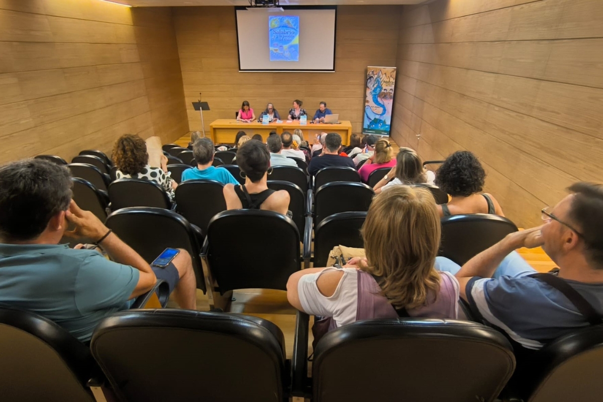 La presentación del libro contó también con la participación del periodista Joaquín Abenza y la librera Ana Escarabajal, que junto a la autora y los asistentes desgranaron que Salabrio es una criatura descrita con un cuerpo largo y con una cola que recuerda la de los caballitos de mar. Es considerado un guardián del Mar Menor, y puede ser invocado para pedirle favores, aunque también tiene un lado oscuro con terribles consecuencias.