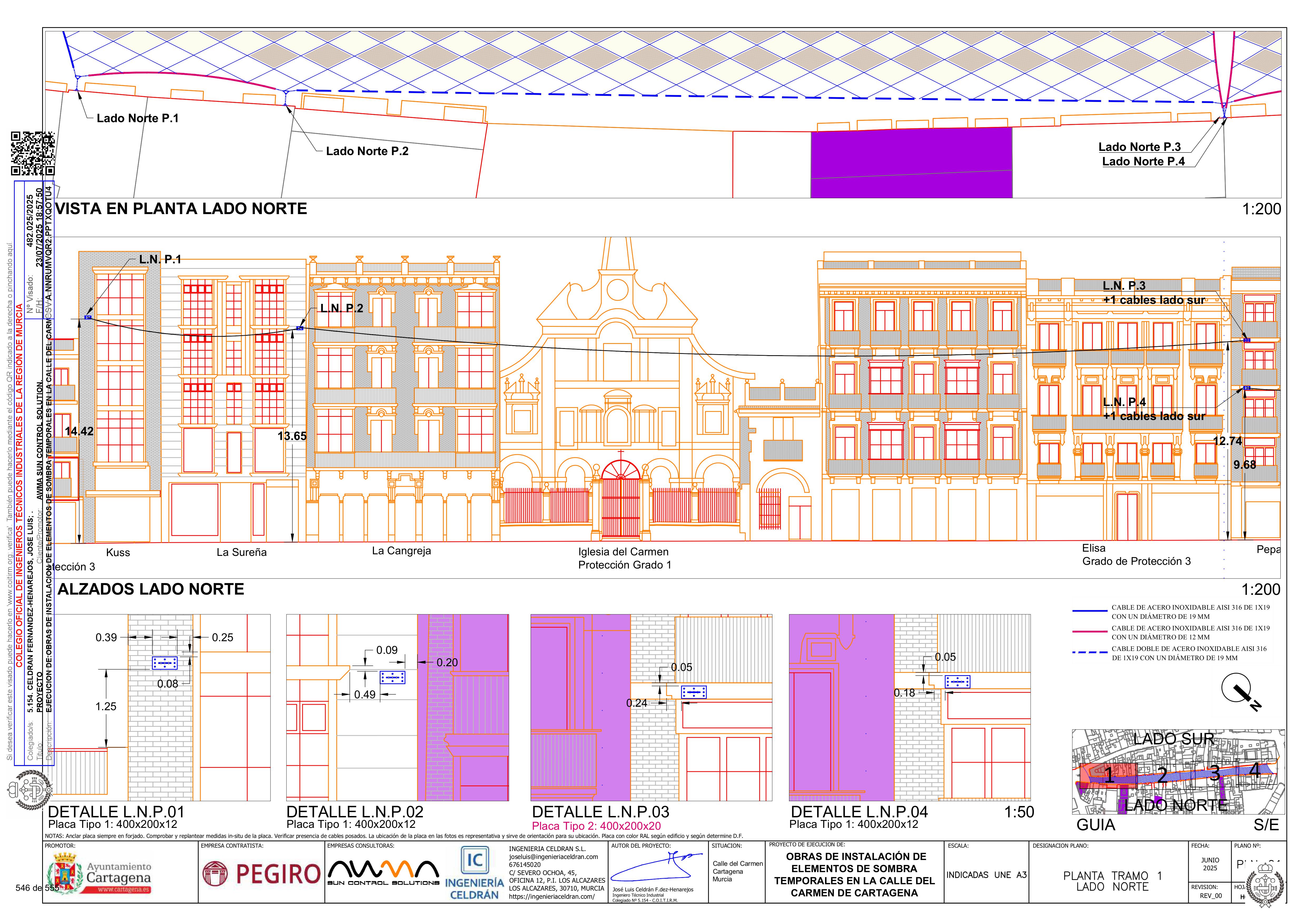La presencia de este “techo textil” podría reducir la temperatura ambiente de la calle del Carmen en hasta 6 grados, según la estimación del Laboratorio de Investigación Urbana I de la Escuela de Arquitectura de la UPCT, que, por encargo del Ayuntamiento, realizó el estudio previo encabezados por el director de la escuela, Fernando M. García Martín, y el profesor Ricardo Carcelén González