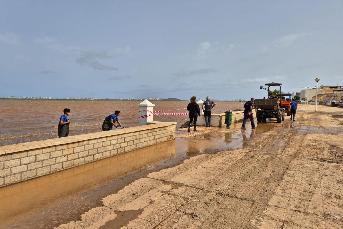 Los servicios municipales trabajan en las poblaciones del Mar Menor más afectadas, como son Los Nietos, Playa Honda, Mar de Cristal y El Algar