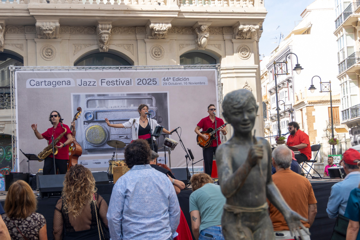 Cartagena Jazz Festival. Concierto de Cash in the hat, a las 12:30 horas, en la plaza del Icue La banda protagoniza el segundo concierto en el escenario gratuito del festival. Nacieron como grupo en 2023, pasando de ser formato dúo (piano y voz) para ,finalmente, pasar a ser una banda con piano, voz, guitarra, dobro, armónica y batería. Seguro que pondrán a bailar a todo el público asistente. Entrada libre.