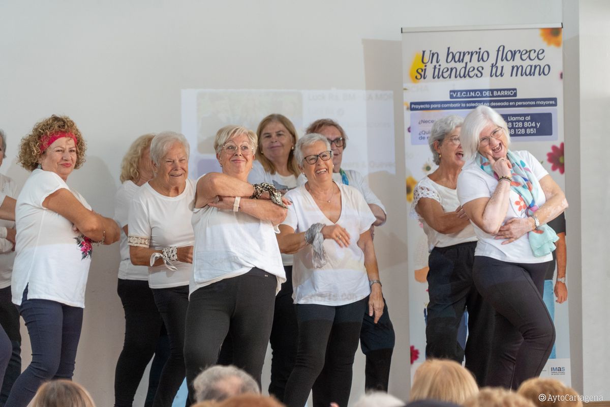 La concejal delegada de Mayores, Francisca Martínez, compartió con los participantes este jornada en la que resaltó el éxito del proyecto, que comenzó como una experiencia piloto el pasado mes de junio en tres barrios de Cartagena: San Antón, Bº de la Concepción y el Casco, extendiéndose a Nueva Cartagena, Sector Estación, Los Dolores, Barriada Virgen de la Caridad y San Ginés, un total de 8 barrios que agrupan ya a más de 200 personas participantes.