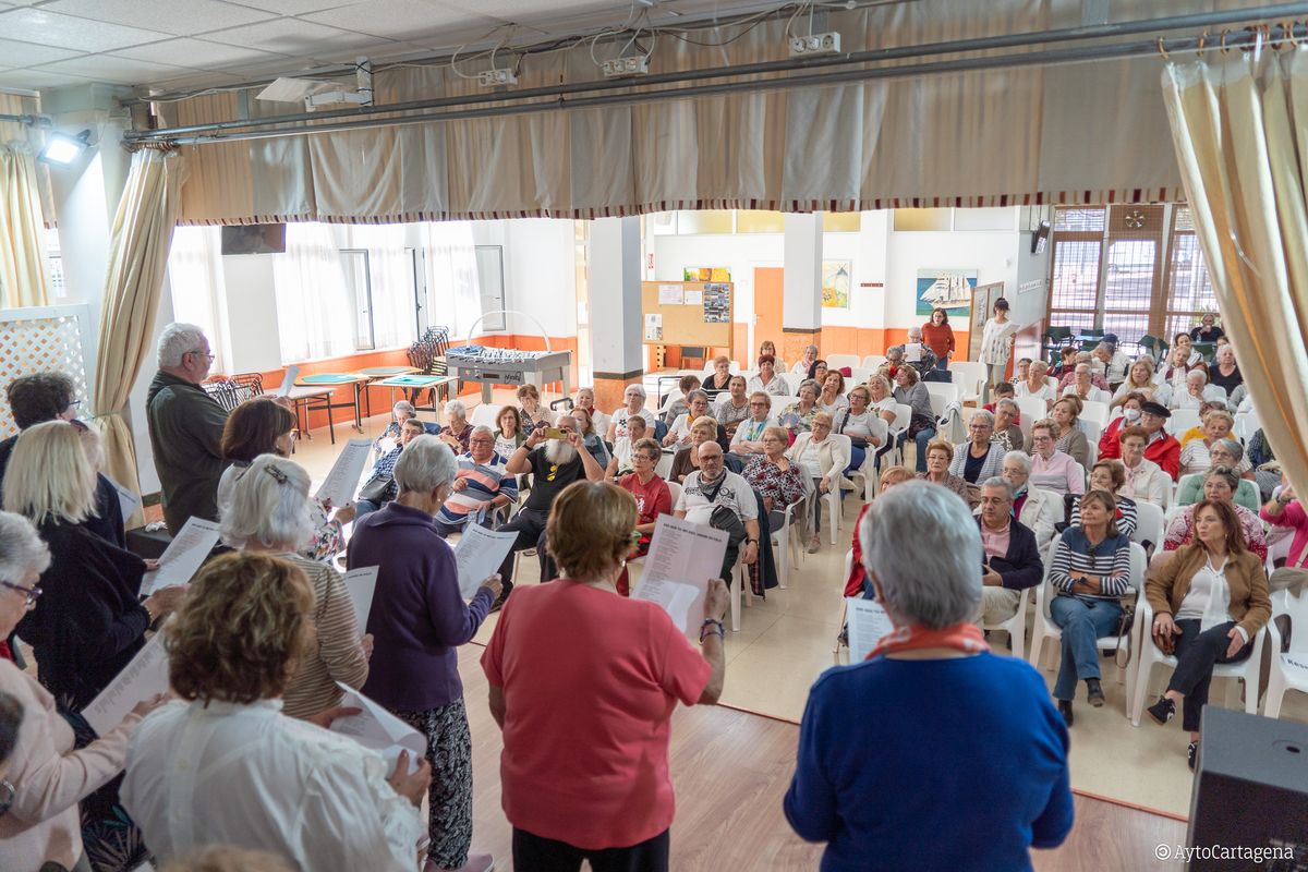 El Ayuntamiento de Cartagena celebró este miércoles 19 de noviembre una Jornada de Convivencia en Canteras incluida en el proyecto Vecino del Barrio, que reunió a unas 150 personas mayores en situación de soledad de diferentes barrios para compartir experiencias y actividades.