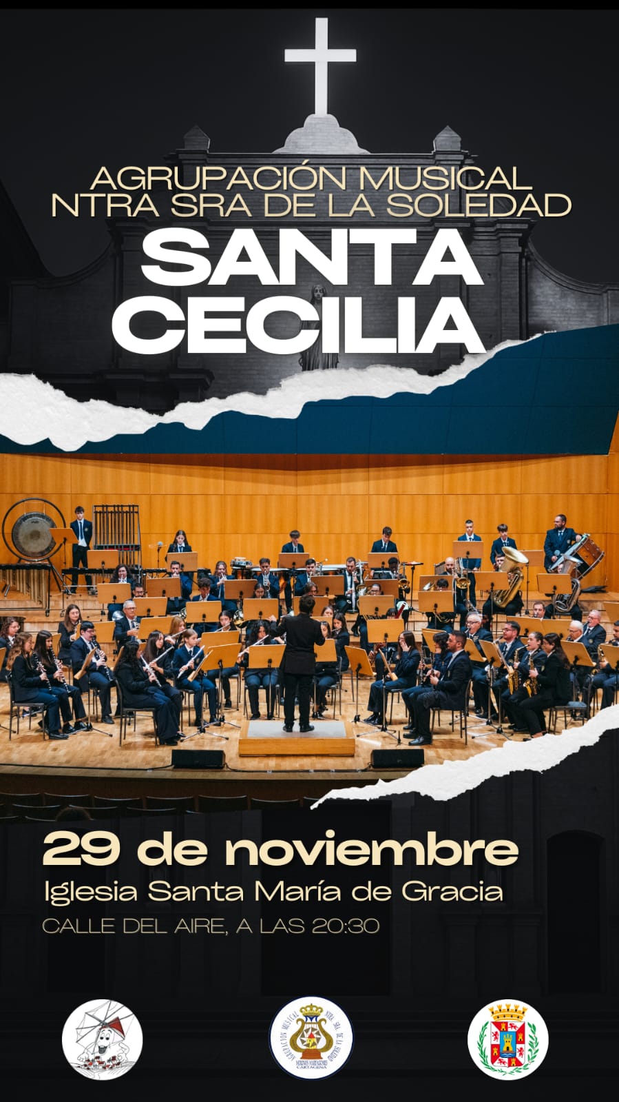 Concierto Agrupación Musical Nuestra Señora de la Soledad, a las 20:30 horas, en la iglesia Santa María de Gracia. Se trata de un concierto que la agrupación realiza en honor a Santa Cecilia, patrona de la música. Según los organizadores, es un viaje musical que te llevará desde la gran pantalla hasta la grandiosidad de las composiciones originales. Entrada libre, hasta completar aforo.