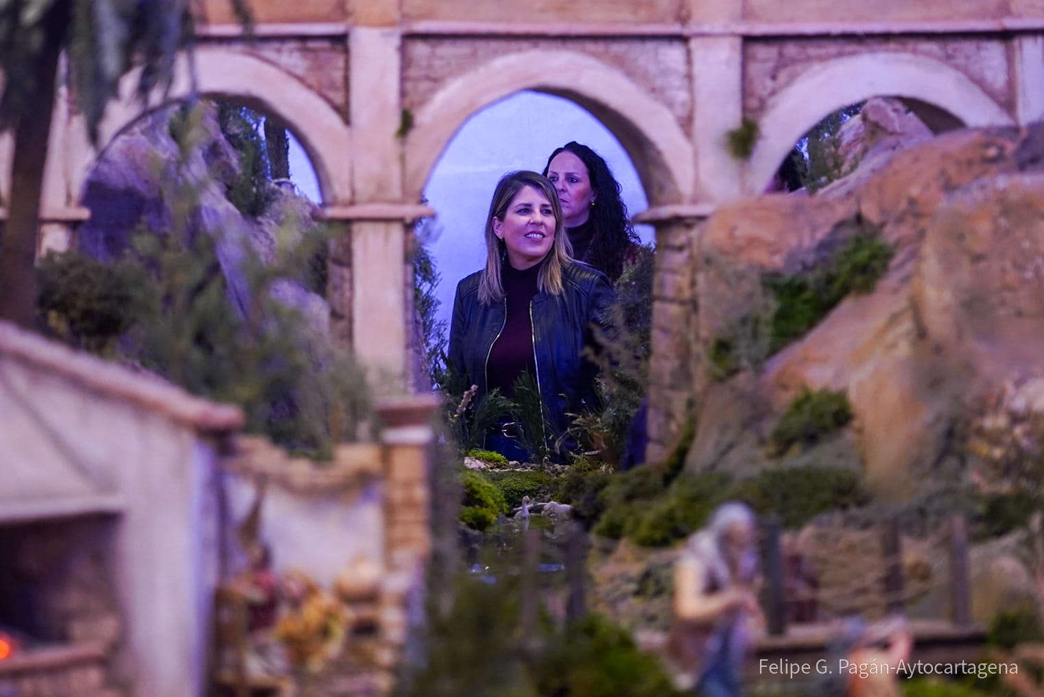 Tras la bendición del Belen, por el capellán de la Cofradía del Resucitado, se ha abierto al público. La alcaldesa de Cartagena ha sido una de las primeras en visitarlo, acompañada por la alcaldesa de Fuente Álamo, Juana Pérez, y los representantes de las Asociaciones Belenistas de Cartagena, Antonio Ferrer, y Fuente Álamo, Salvador Valcárcel, asi como varios concejales del Gobierno.