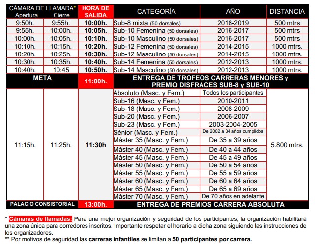 ▪ Miércoles, 31 de diciembre: de 9:00 a 10:00. Entrega de dorsales sólo de la carrera absoluta.