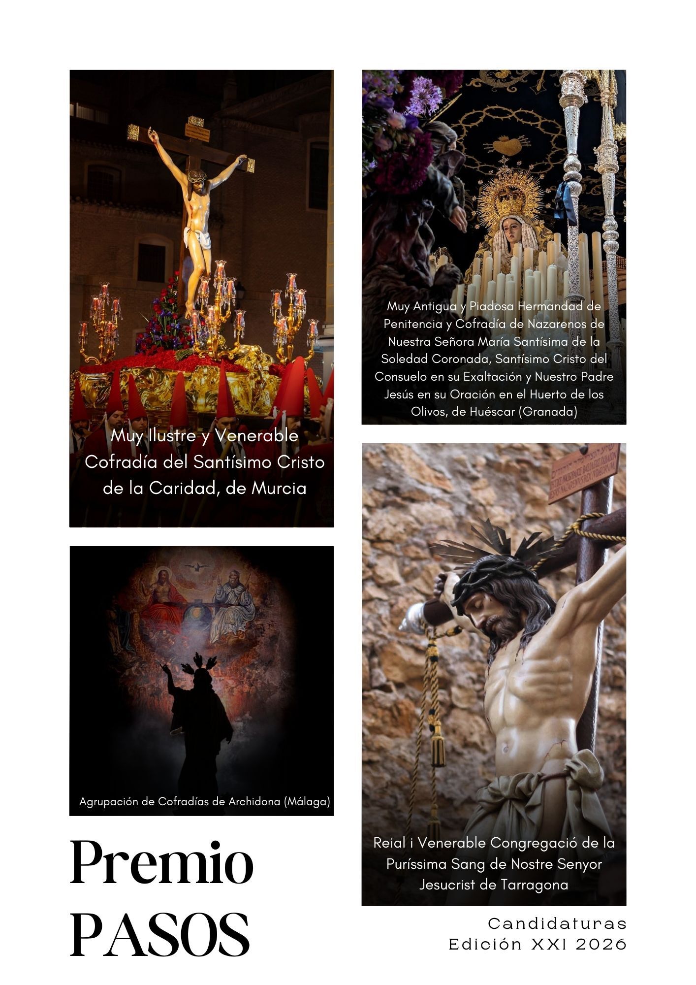 Cerrado el plazo de admisión de candidaturas al Premio PASOS 2026, que alcanza este año su XXI edición. Cuatro son las candidaturas recibidas procedentes de distintos puntos de España, reflejo del respaldo creciente a este galardón y del compromiso del mundo cofrade con la igualdad real entre mujeres y hombres.
