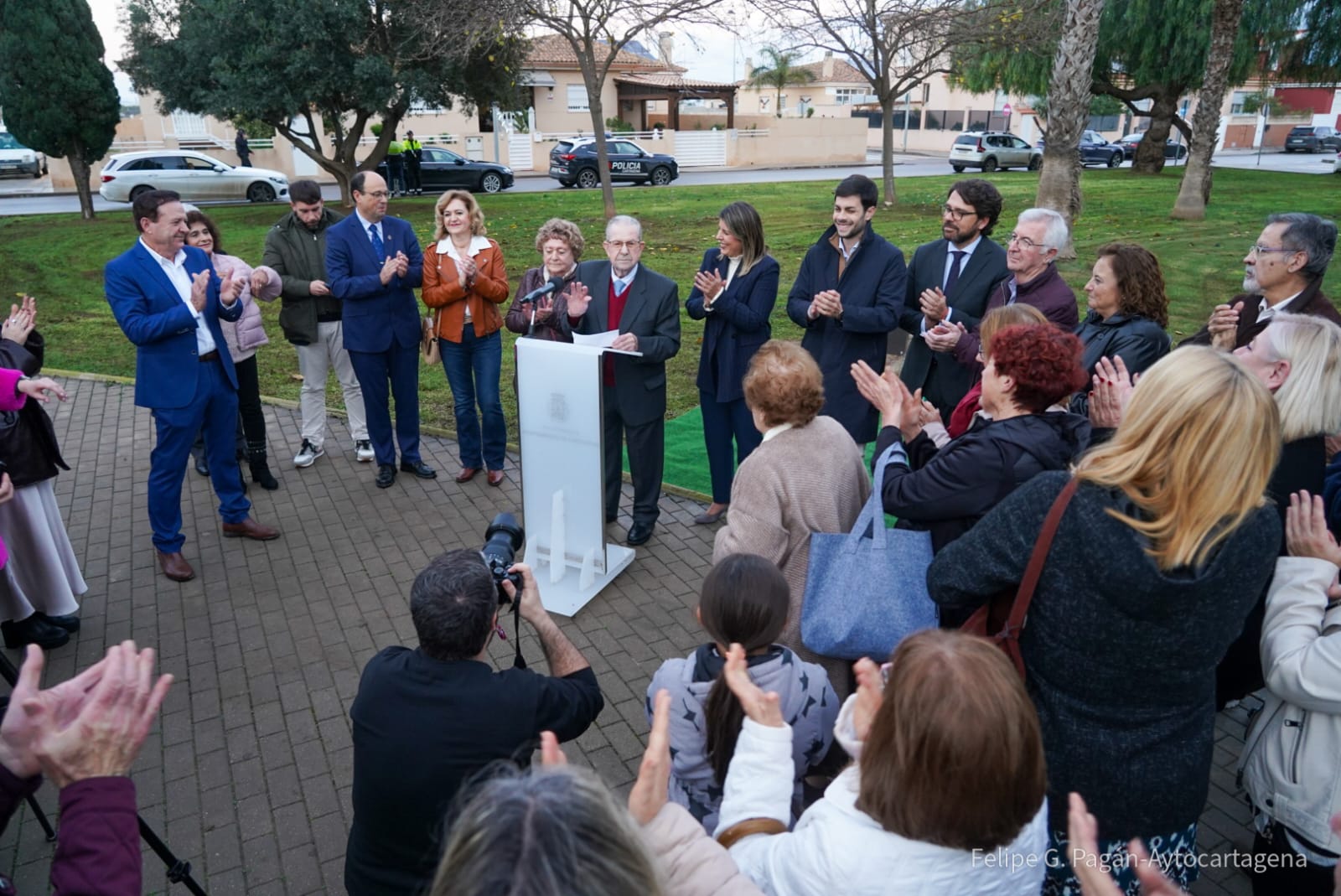 Por su parte, el presidente de la Junta Municipal, Juan Manuel Ayaso, y el presidente vecinal de La Aparecida, Francisco José Martínez, también han tenido palabras de elogio hacia Jesús. El descubrimiento de la placa ha contado con la presencia junto a la alcaldesa de los ediles Ignacio Jáudenes, José Martínez, Álvaro Valdés, Enrique Pérez y María Antonia Pérez; así como el cronista de Cartagena José Sánchez.