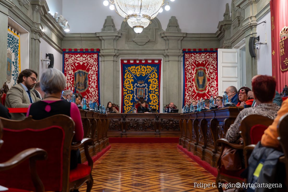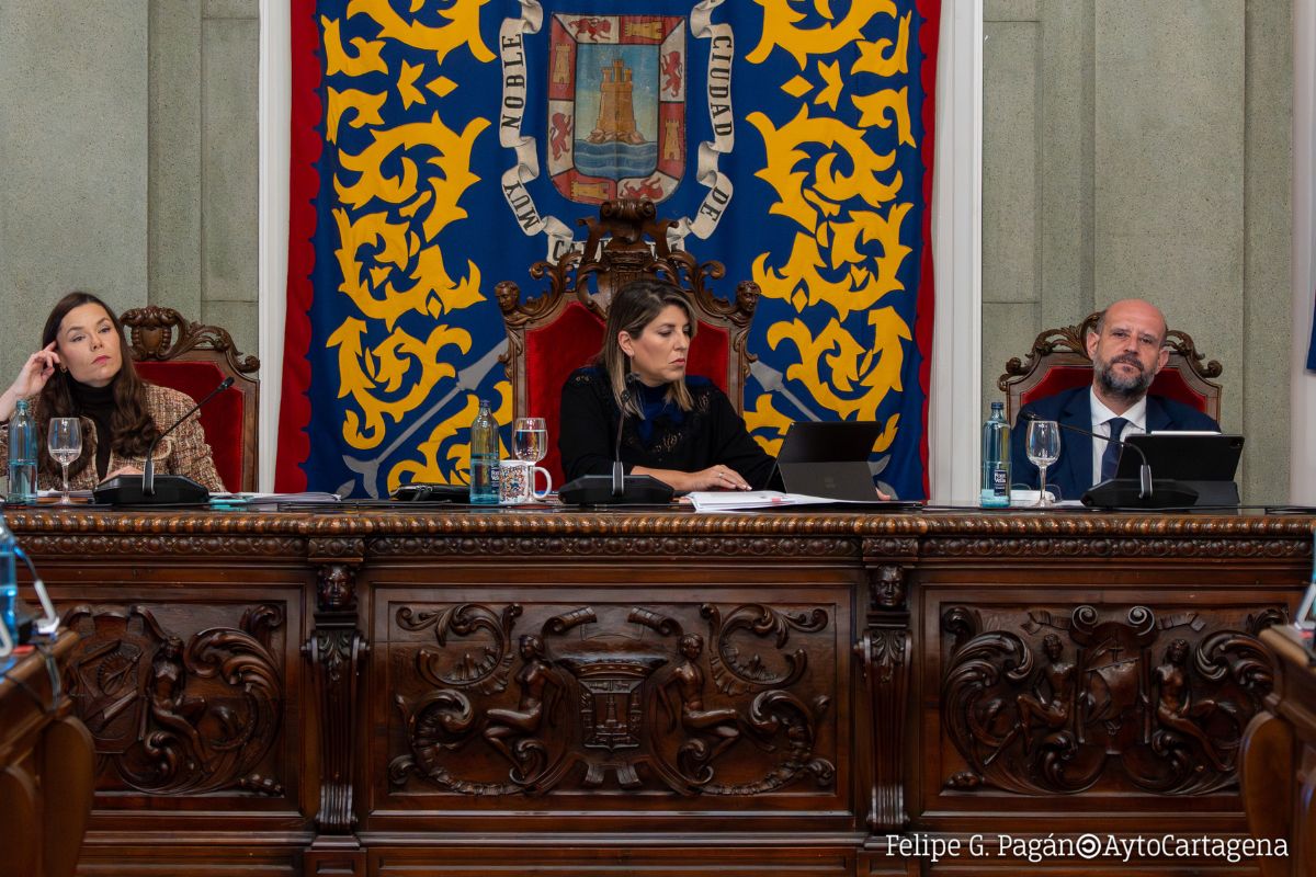 La corporación municipal del Ayuntamiento de Cartagena se ha reunido la mañana de este 19 de diciembre con motivo del último pleno ordinario municipal de 2025. La sesión, presidida por la alcaldesa Noelia Arroyo, ha comenzado con el anuncio de cuatro propuestas de la regidora, la Junta de Gobierno, de sus miembros y de los demás concejales con responsabilidad ejecutiva: