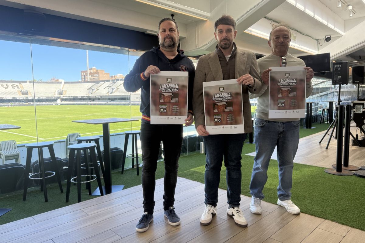 Esta mañana se ha presentado en el Estadio Municipal Cartagonova el I Memorial Pedro López, con la participación del concejal de Deportes y Juventud, José Martínez, y del presidente y vicepresidente de la AD La Vaguada, Bernardino Montoro y Antonio Lardín.