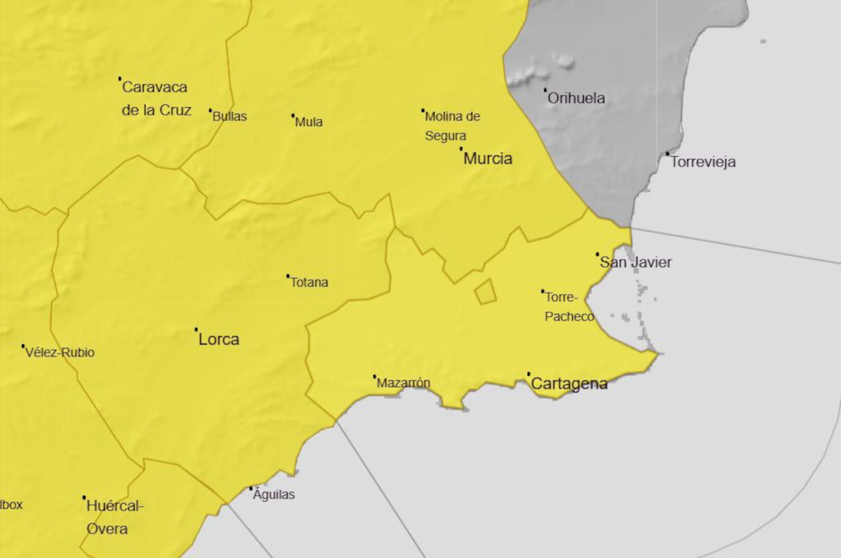 La Agencia Estatal de Meteorología (Aemet) ha emitido un aviso amarillo fenómenos meteorológicos adversos para este domingo 28 de diciembre que afectaría a la zona del Campo de Cartagena, además de otros puntos en la Región, como son Noroeste, Vega del Segura, Valle del Guadalentín, Lorca, Águilas y Mazarrón.