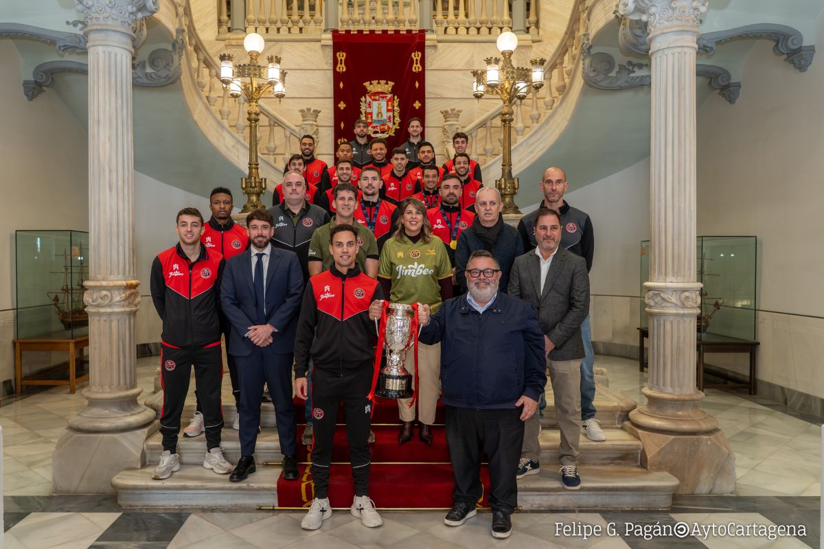 La alcaldesa Noelia Arroyo ha recibido a la plantilla del Jimbee Cartagena Costa Cálida en el Palacio Consistorial este 8 de enero. La visita del club de fútbol sala se produce tras ganar el pasado fin de semana su tercera Supercopa de España consecutiva. El triunfo se produjo en Palma. Allín venció en semifinales y la final al Peñíscola y al Palma Futsal, respectivamente.