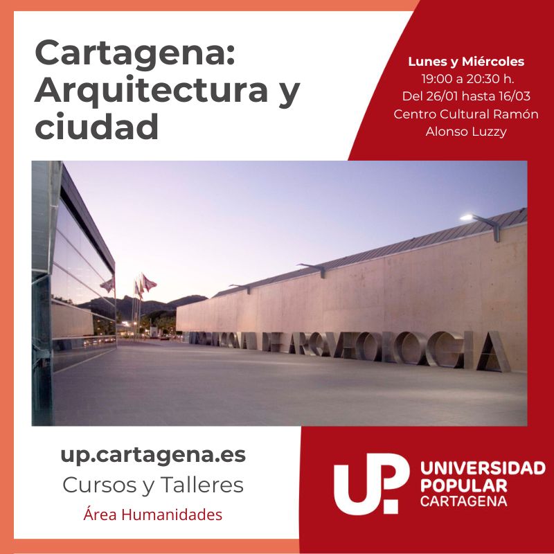 Además, el 26 de enero arrancará el curso Cartagena: arquitectura y ciudad, con el que los participantes podrán conocer mejor Cartagena a través de su configuración urbana y evolución histórica. Será impartido los lunes y miércoles, de 19:00 a 20:00 horas en el Centro Cultural Ramón Alonso Luzzy por Antonio Jesús García Monteagudo, arquitecto y jefe del departamento Información Urbanística del Ayuntamiento. Los alumnos podrán conocer más sobre espacios como el Museo del Teatro Romano, el ARQVA o la rehabilitación del antiguo CIM como Facultad de la UPCT, entre otros espacios. Habrá sesiones teóricas y diferentes visitas guiadas a intervenciones arquitectónicas.